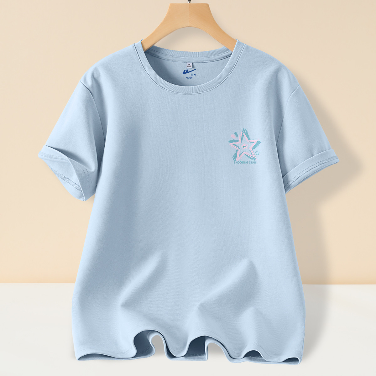 【女装100%棉】夏季女式休闲T恤宽松简约百搭纯棉透气短袖女 027347