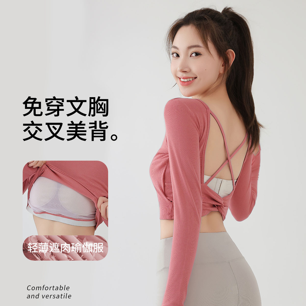 带胸垫瑜伽服女上衣高级感舞蹈练功训练服拉丁舞普拉提t恤罩衫 211219