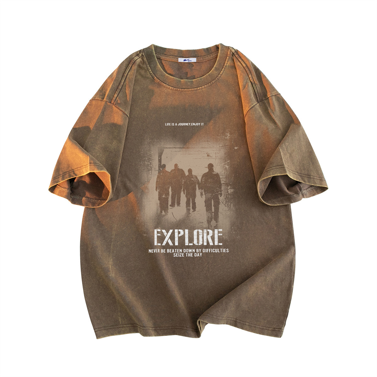 【做旧纯棉】夏季水洗设计感短袖t恤男ins潮牌美式复古体恤衫 500371