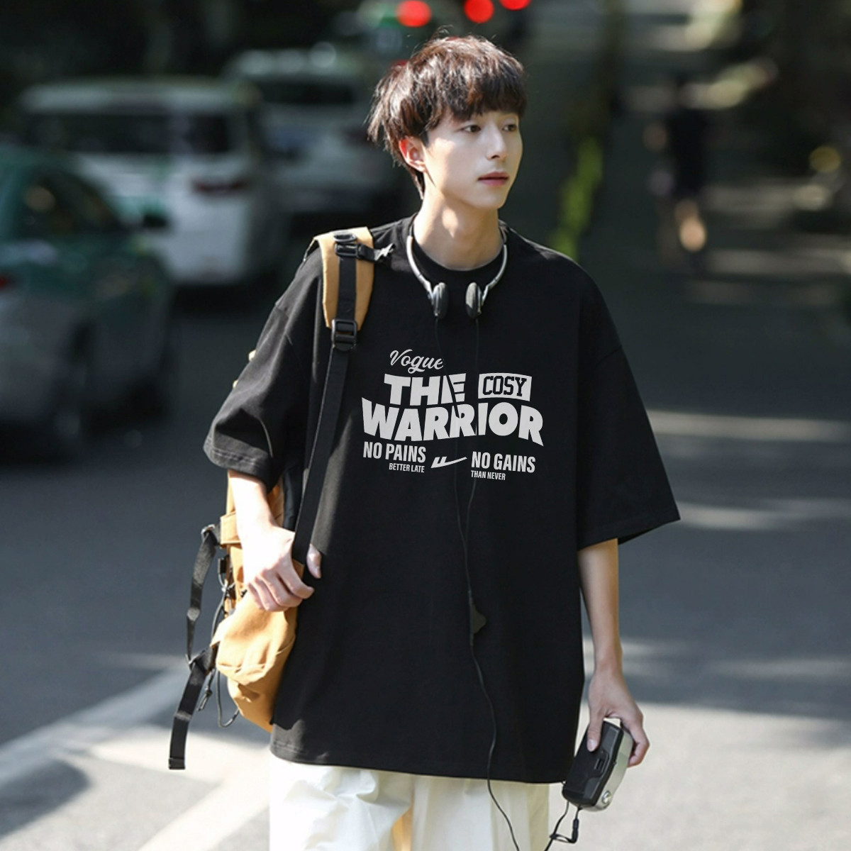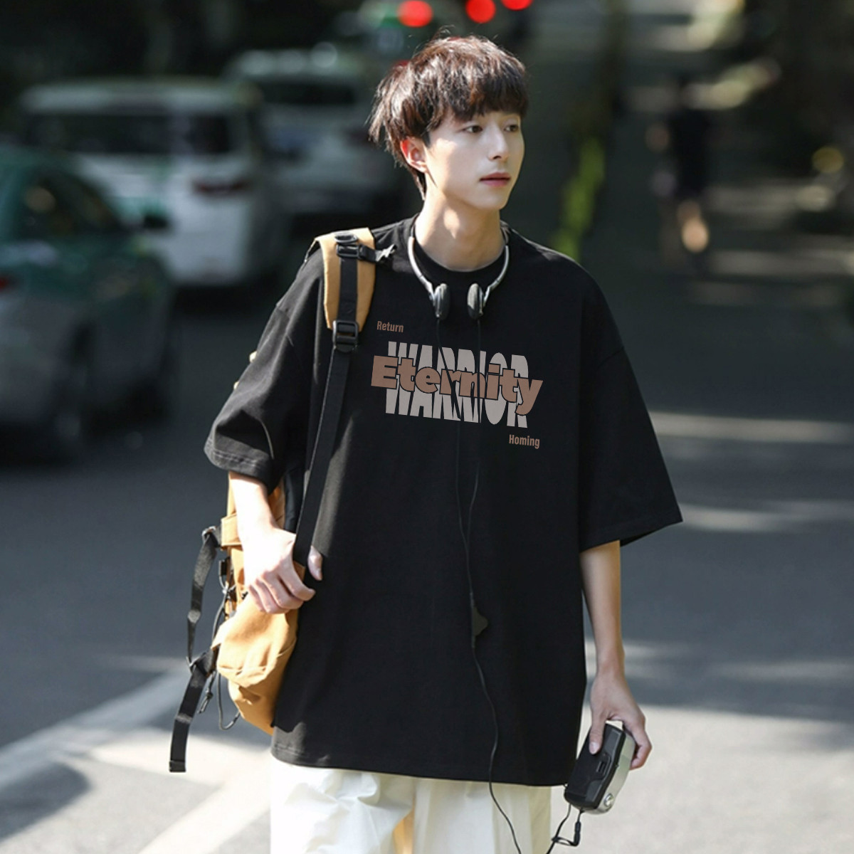 【100%纯棉】国潮复古风夏季宽松潮牌高街帅气男生短袖t恤衫 457555