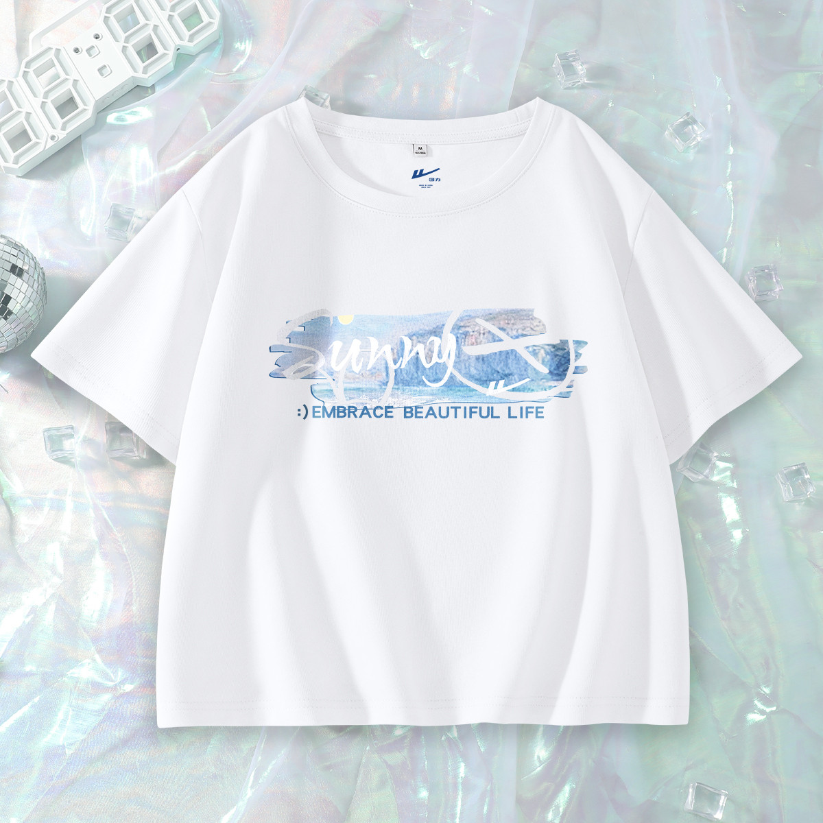 【女装100%棉】夏季女式短袖T短款显瘦设计感甜辣风上衣 581715
