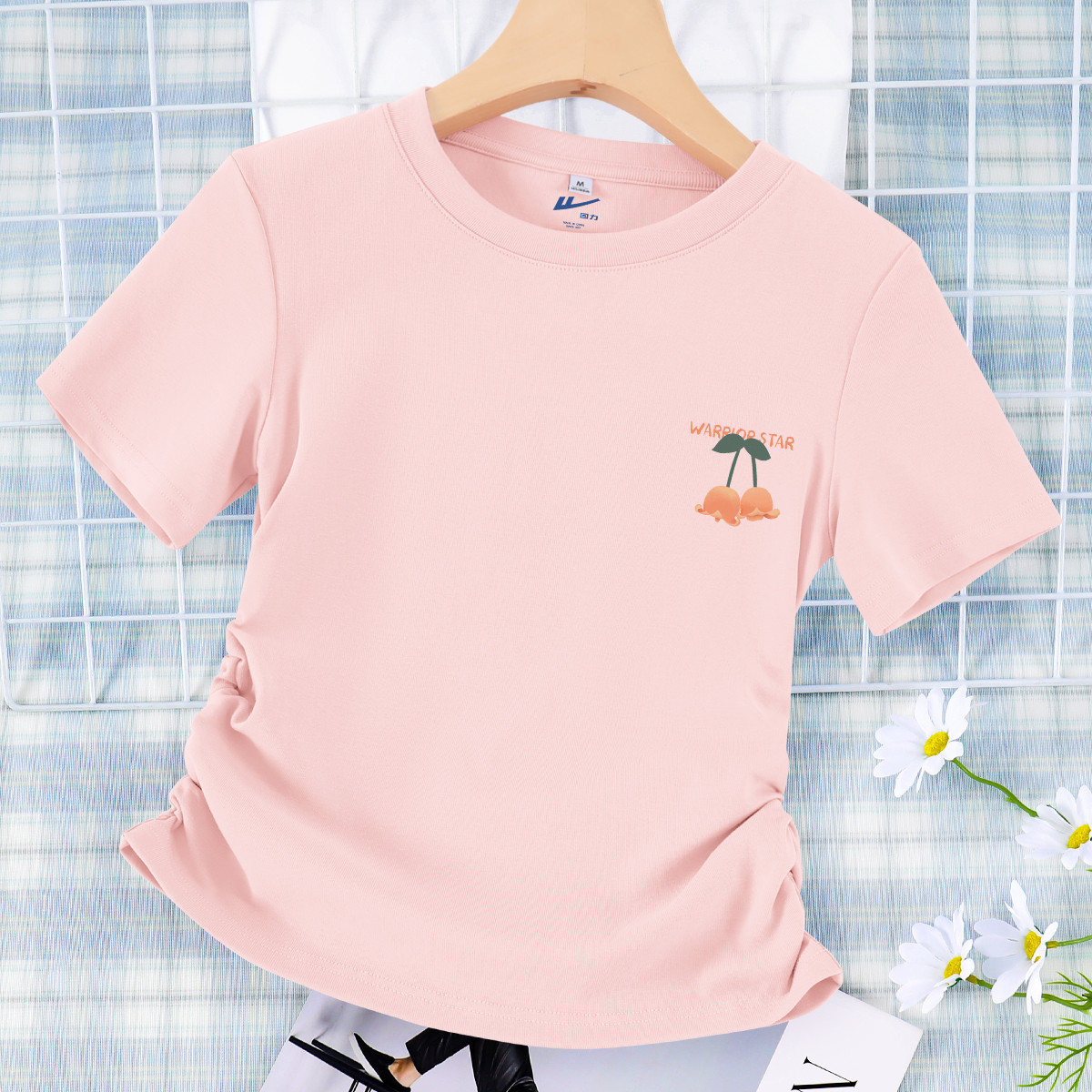 【女装正肩】女式短款小个子T恤紧身显瘦夏季小众抽褶设计感短袖 928019