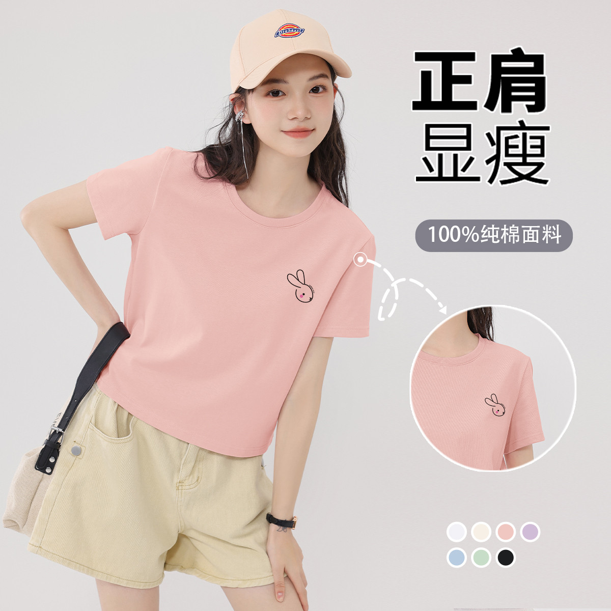 【女装100%棉】夏季女式休闲T恤宽松简约百搭纯棉透气短袖女 454227