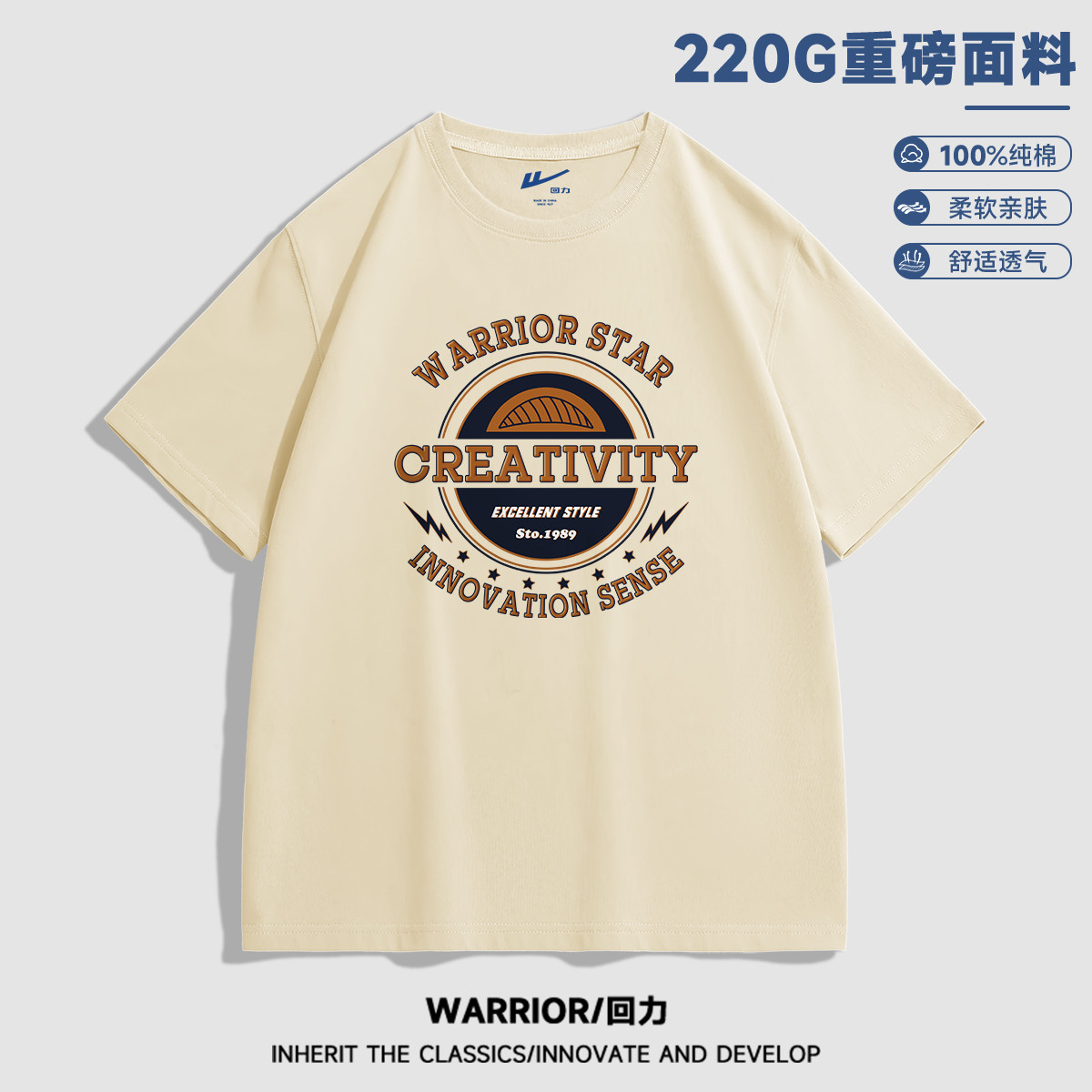 【220克重磅纯棉】夏季简约国潮风男女同款半袖舒适透气短袖男 642131