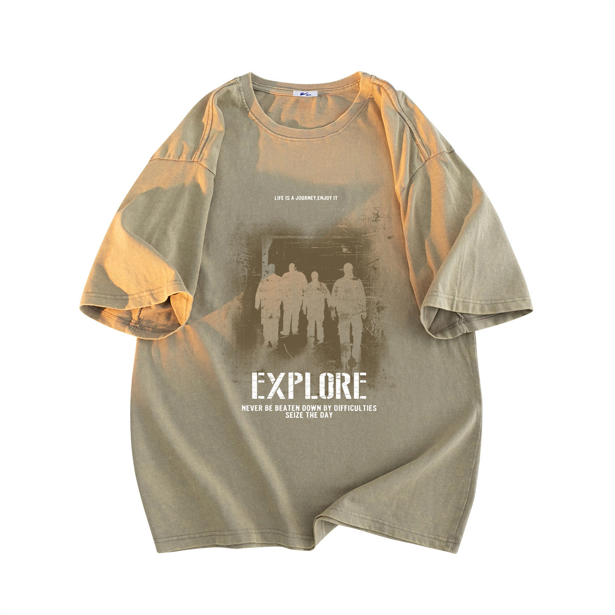 【做旧纯棉】夏季水洗设计感短袖t恤男ins潮牌美式复古体恤衫 874515
