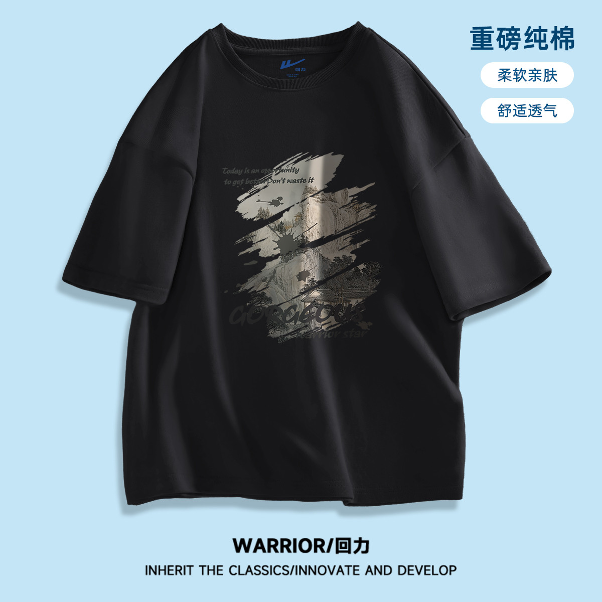 【220克重磅棉】短袖男宽松大码简约潮牌运动上衣重磅纯棉t恤 821331