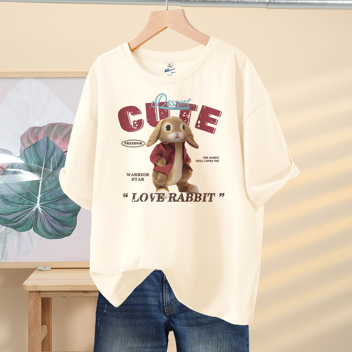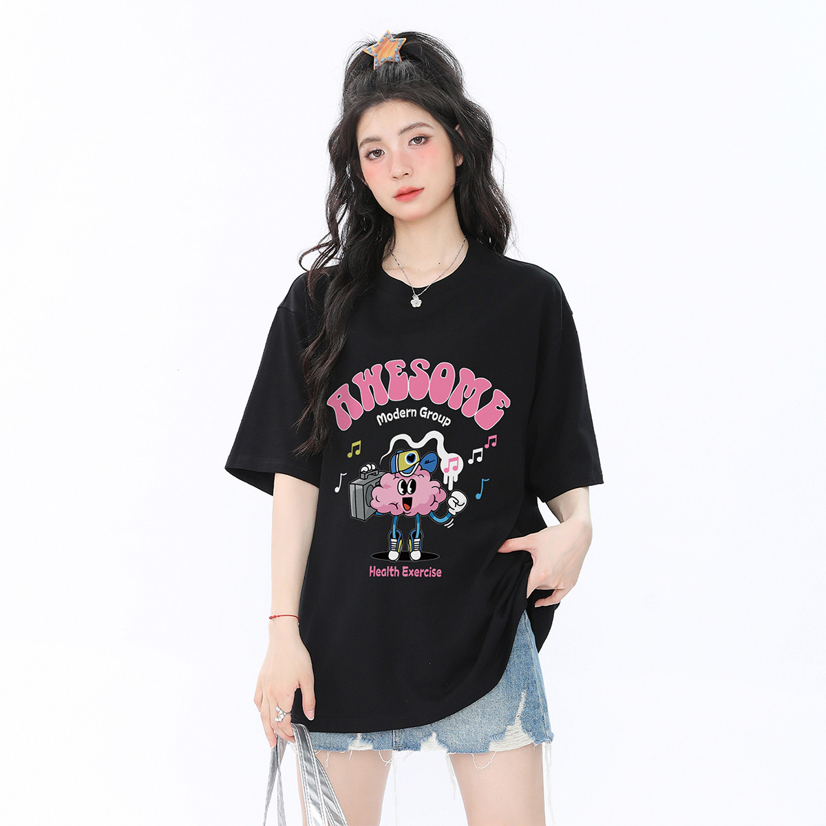 随性纯棉T恤女夏季oversize宽松趣味卡通印花上衣女短袖 325971