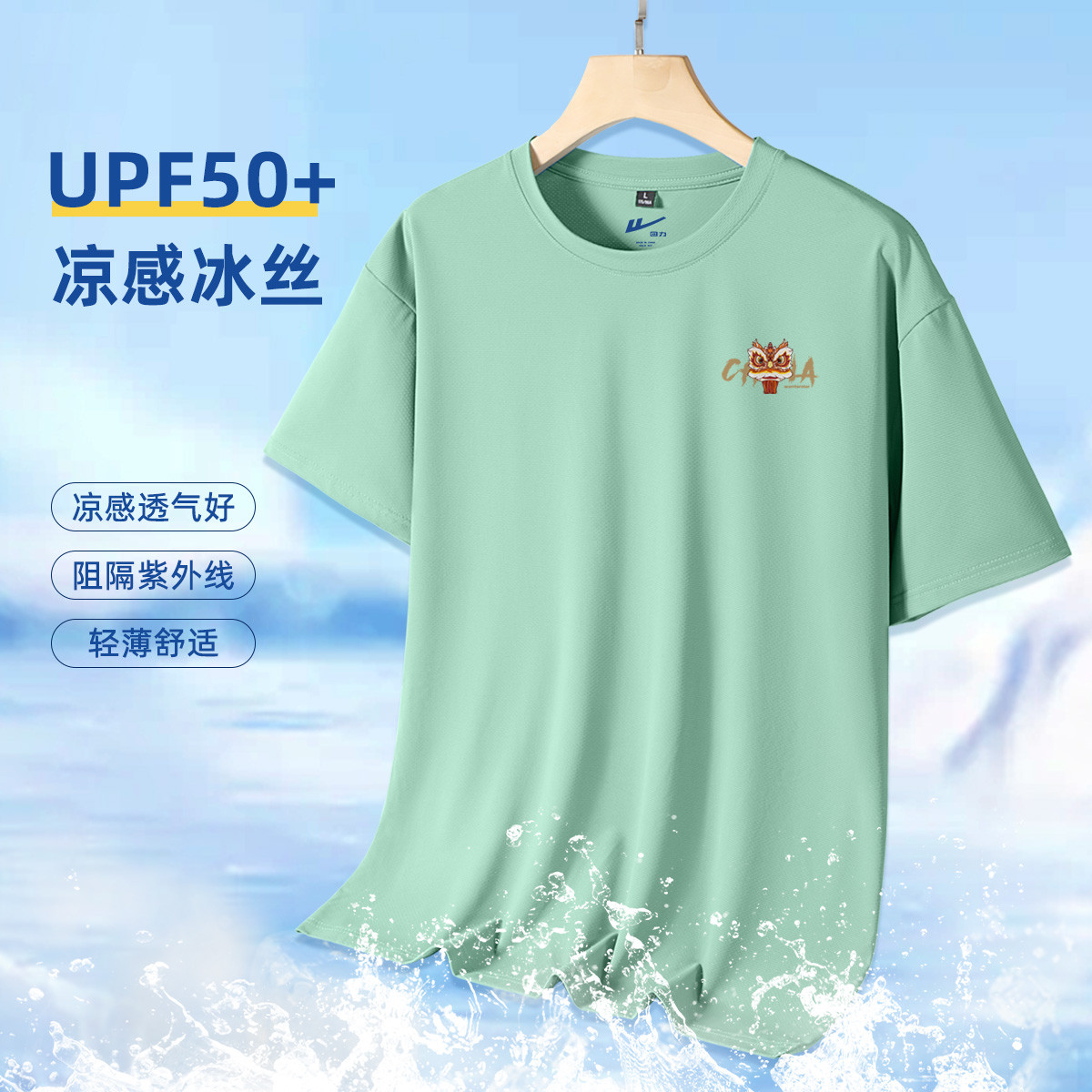 【防晒冰感】夏季UPF50+运动T恤男冰丝薄款宽松圆领短袖男 056851