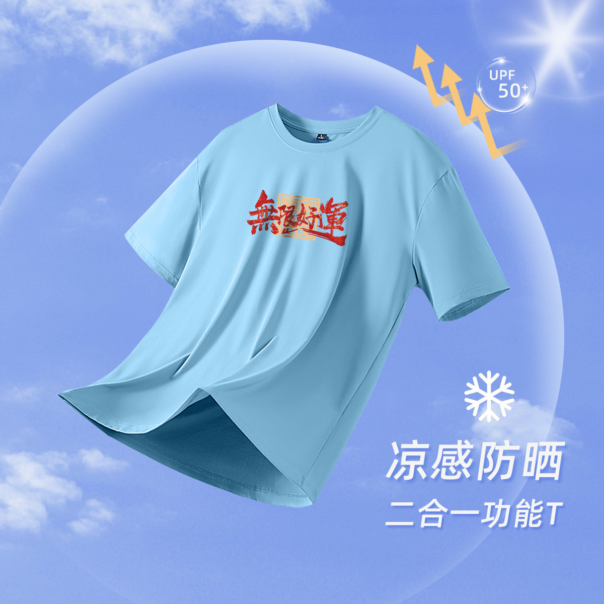 【UPF50+】防晒运动T恤男青少年卡通潮牌夏季冰丝薄款短袖 958547