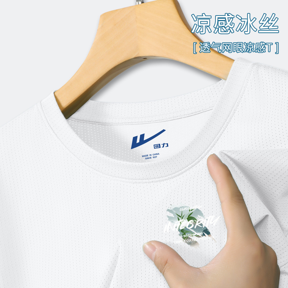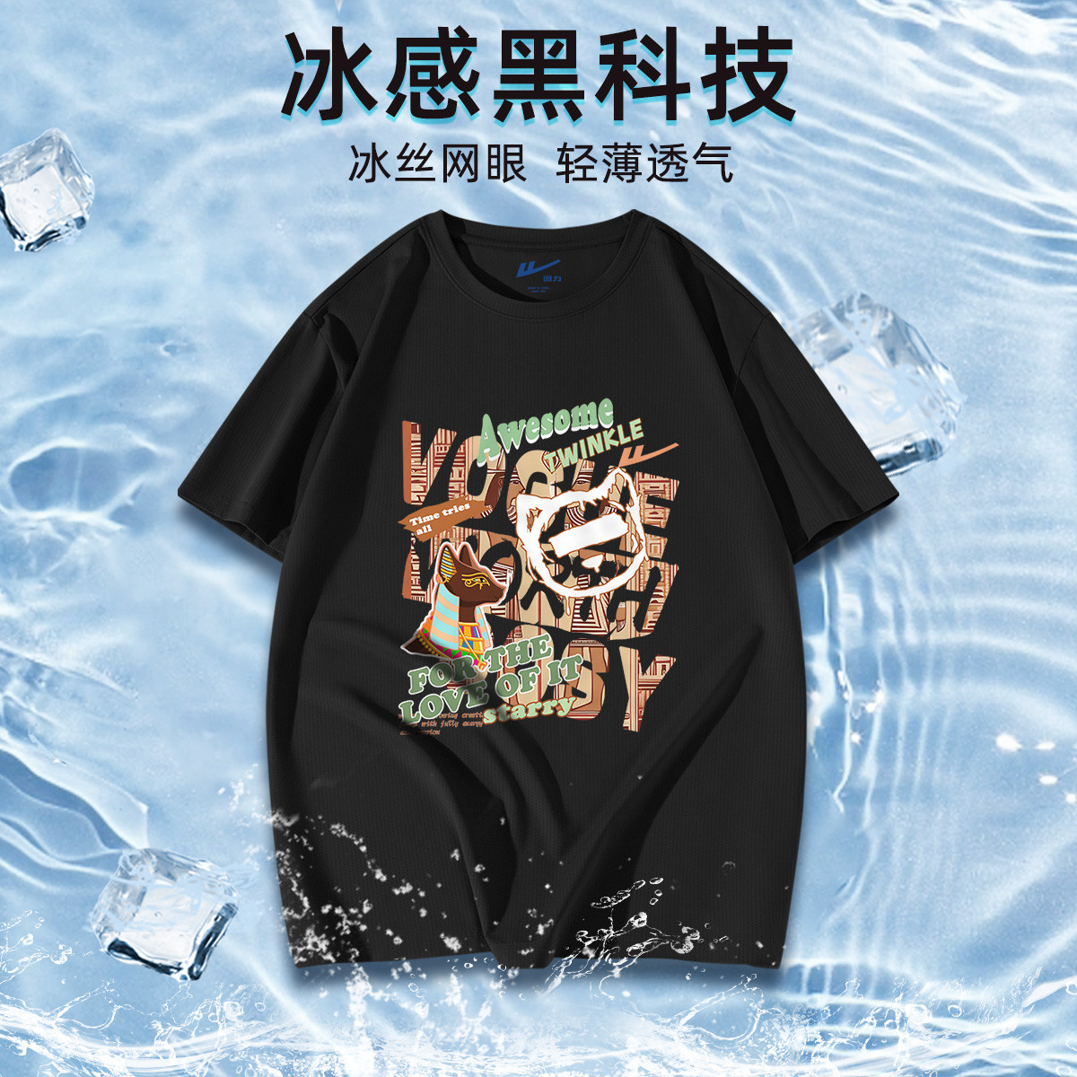 【冰感透气】冰丝网眼短袖t恤男夏季简约印花轻薄透气运动上衣 639507