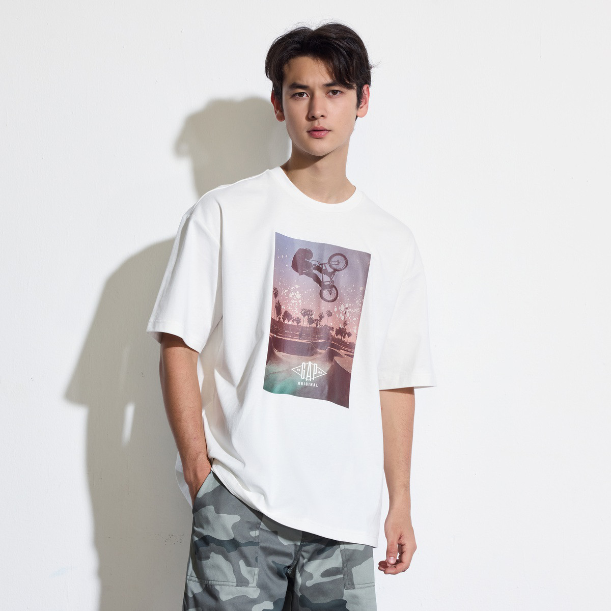 Gap男女装夏季款重磅纯棉圆领短袖T恤宽松印花上衣463239 662554