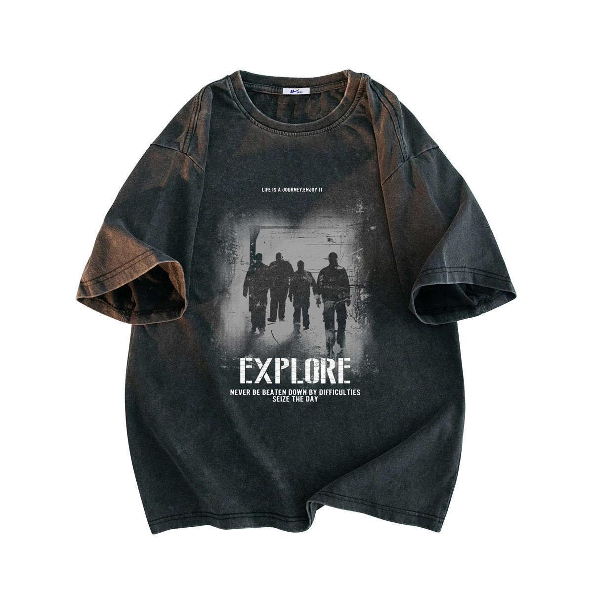 【做旧纯棉】夏季水洗设计感短袖t恤男ins潮牌美式复古体恤衫 483987