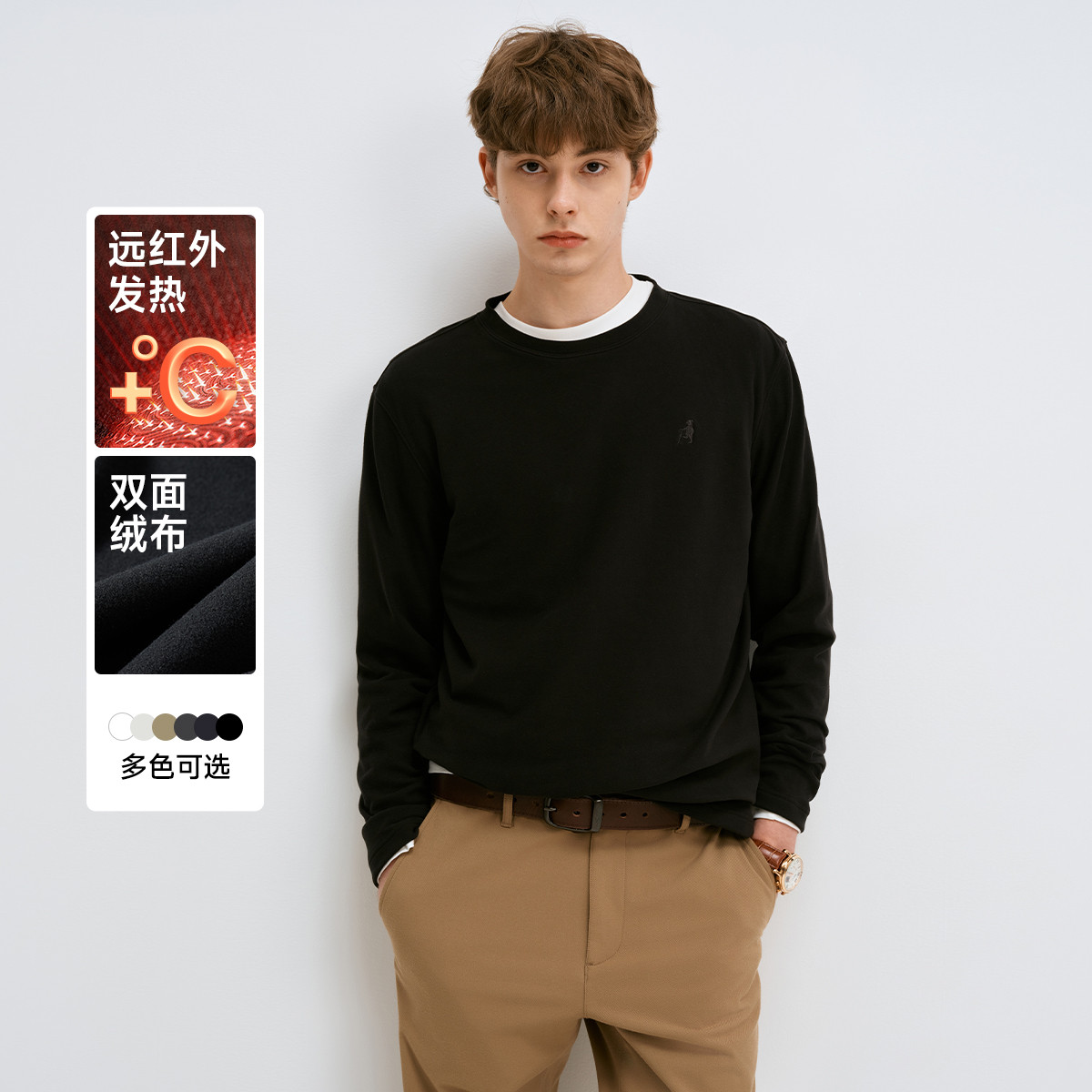 小熊男装休闲时尚潮流简约加绒打底冬远红外发热保暖长袖男式T恤 747521