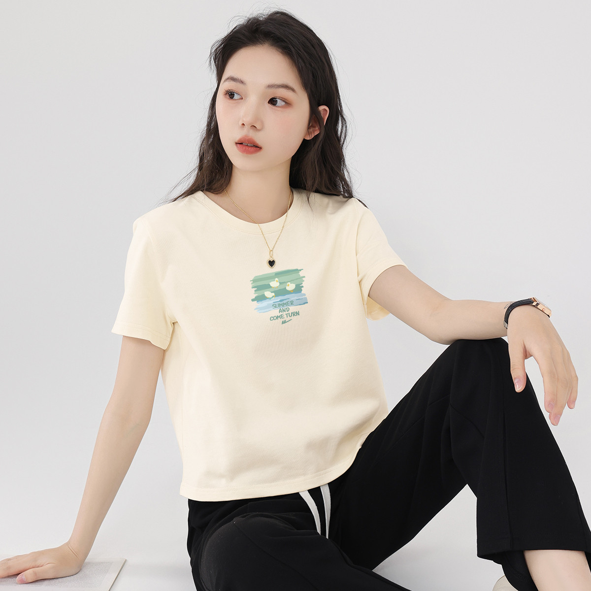 【女装】短款女式t恤夏季高腰显瘦纯棉女式短袖上衣体恤 462931