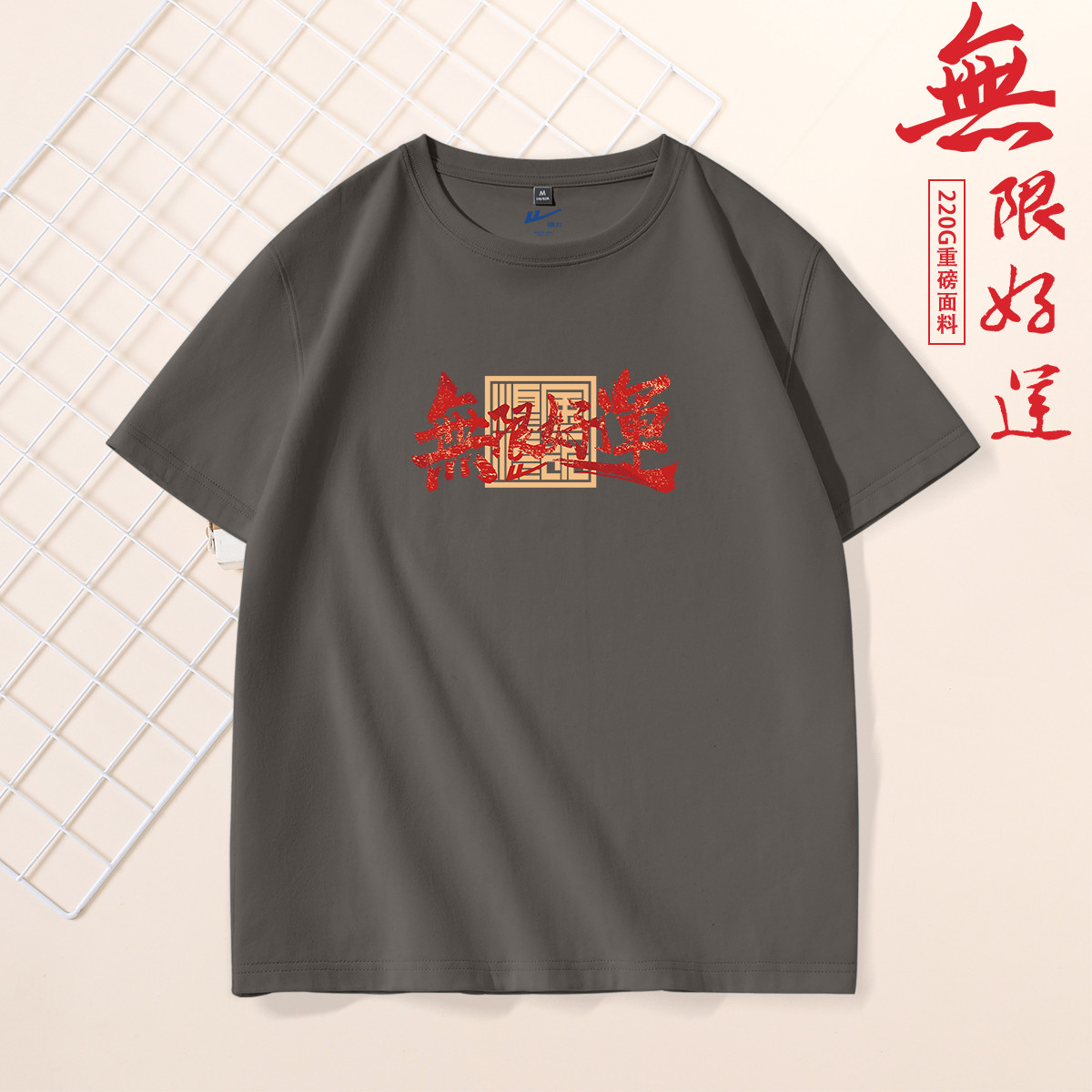 【重磅纯棉】国潮短袖t恤男夏季宽松透气男女同款无限好运半袖 998227