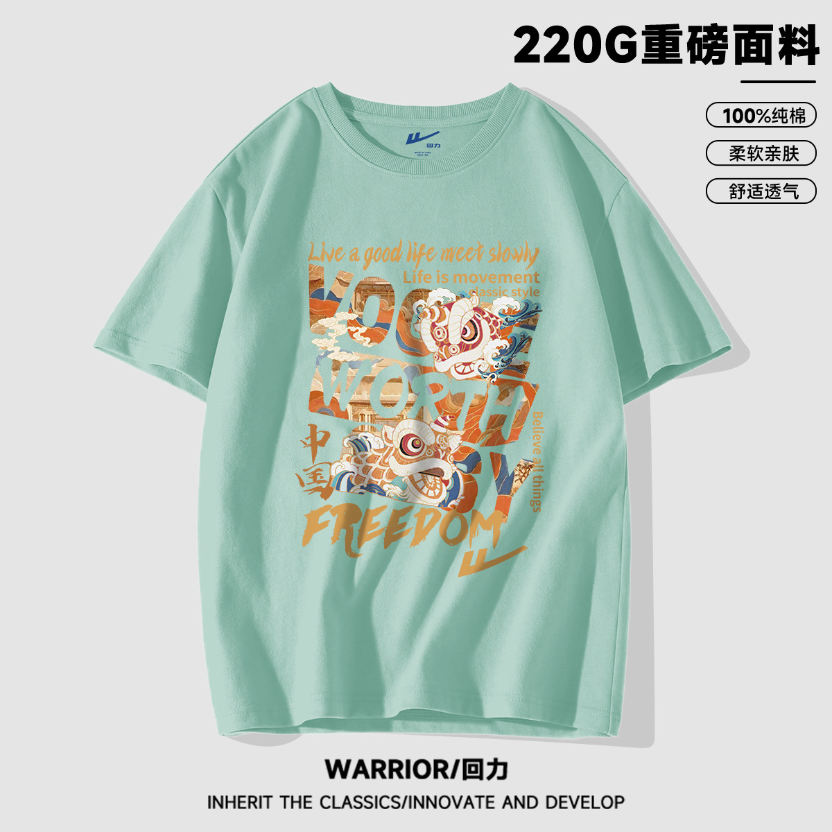 【220克重磅纯棉】夏季纯棉国潮运动上衣体恤男士短袖t恤男 219283
