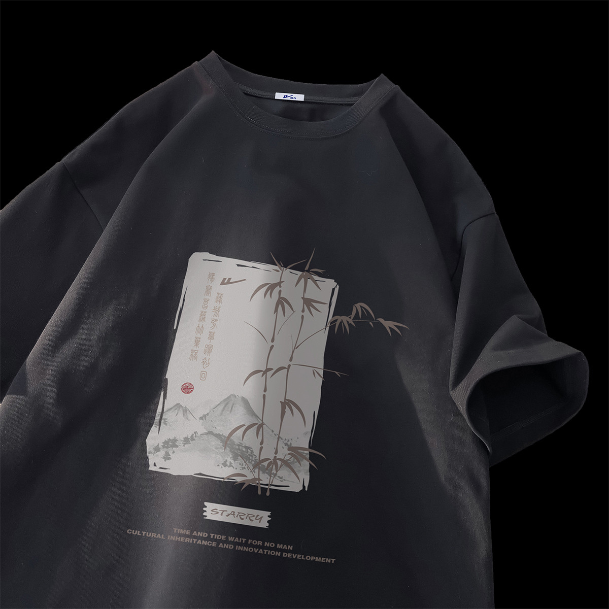 【100%棉】国风短袖t恤男女款2025夏季宽松大码半袖体恤 509203