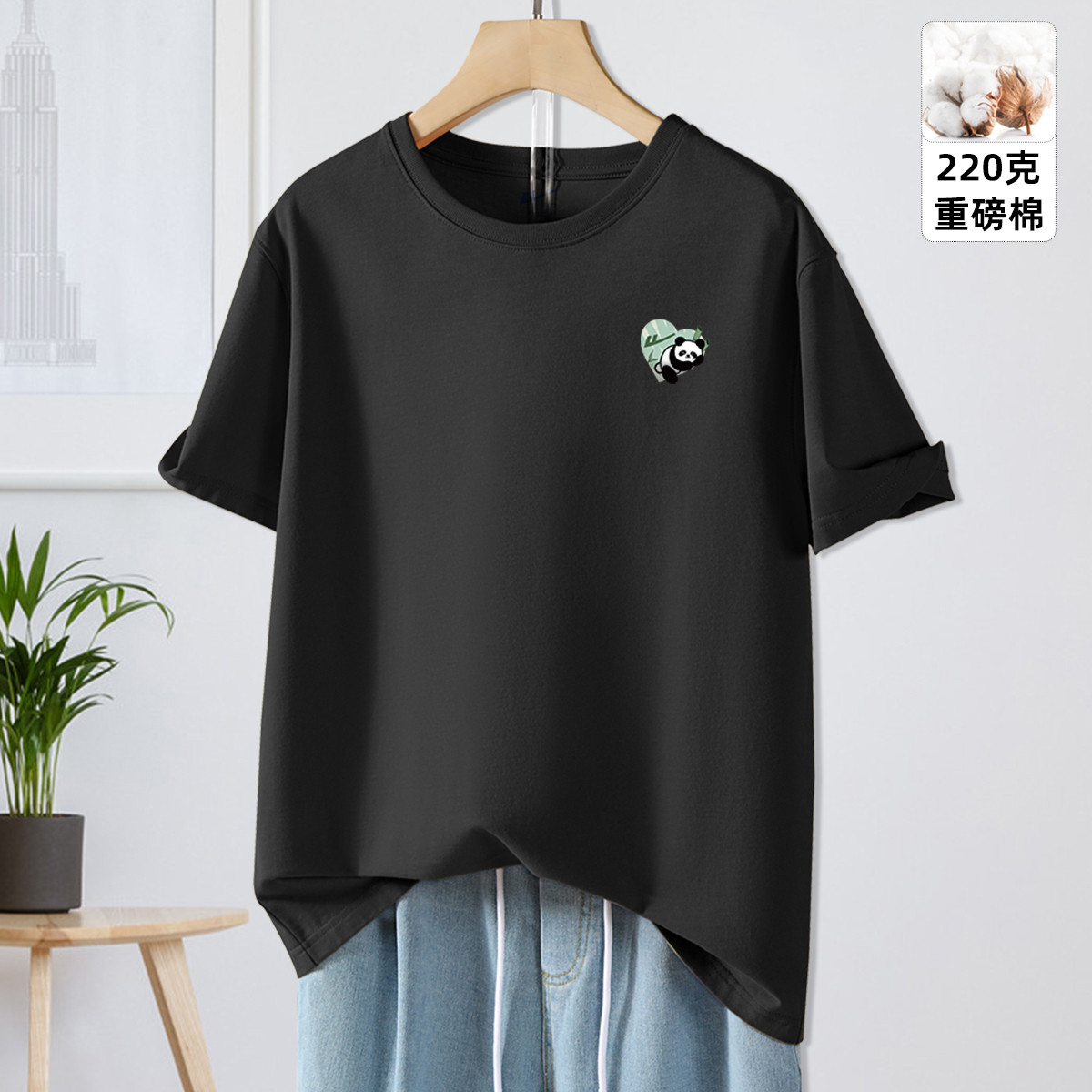 【220克重磅棉】夏季宽松休闲短袖T恤国潮熊猫运动打底上衣 703507