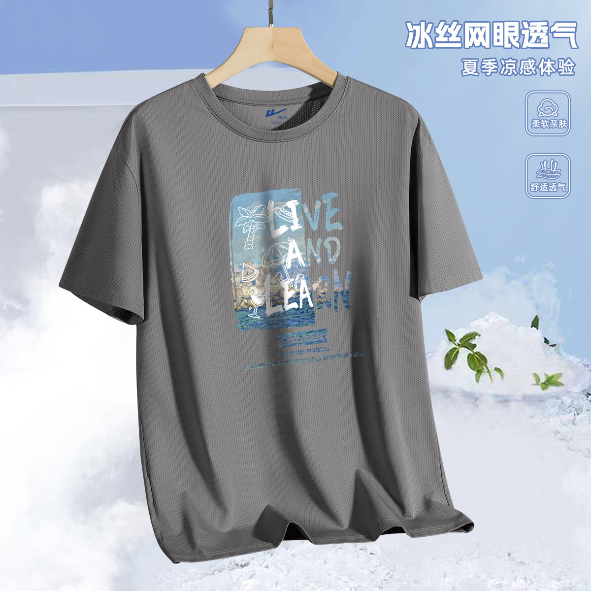 【冰感棉】短袖T恤男夏季冰丝薄款男士运动上衣宽松简约冰感体恤 279699