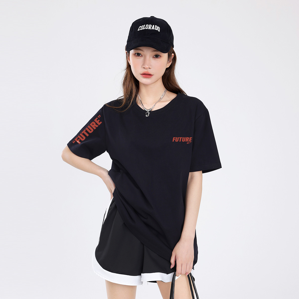 【女装重磅棉】夏季纯棉圆领T恤女运动休闲宽松中长款短袖上衣 679699
