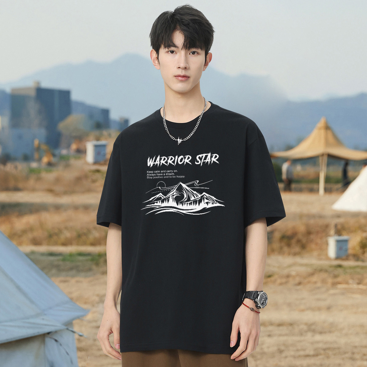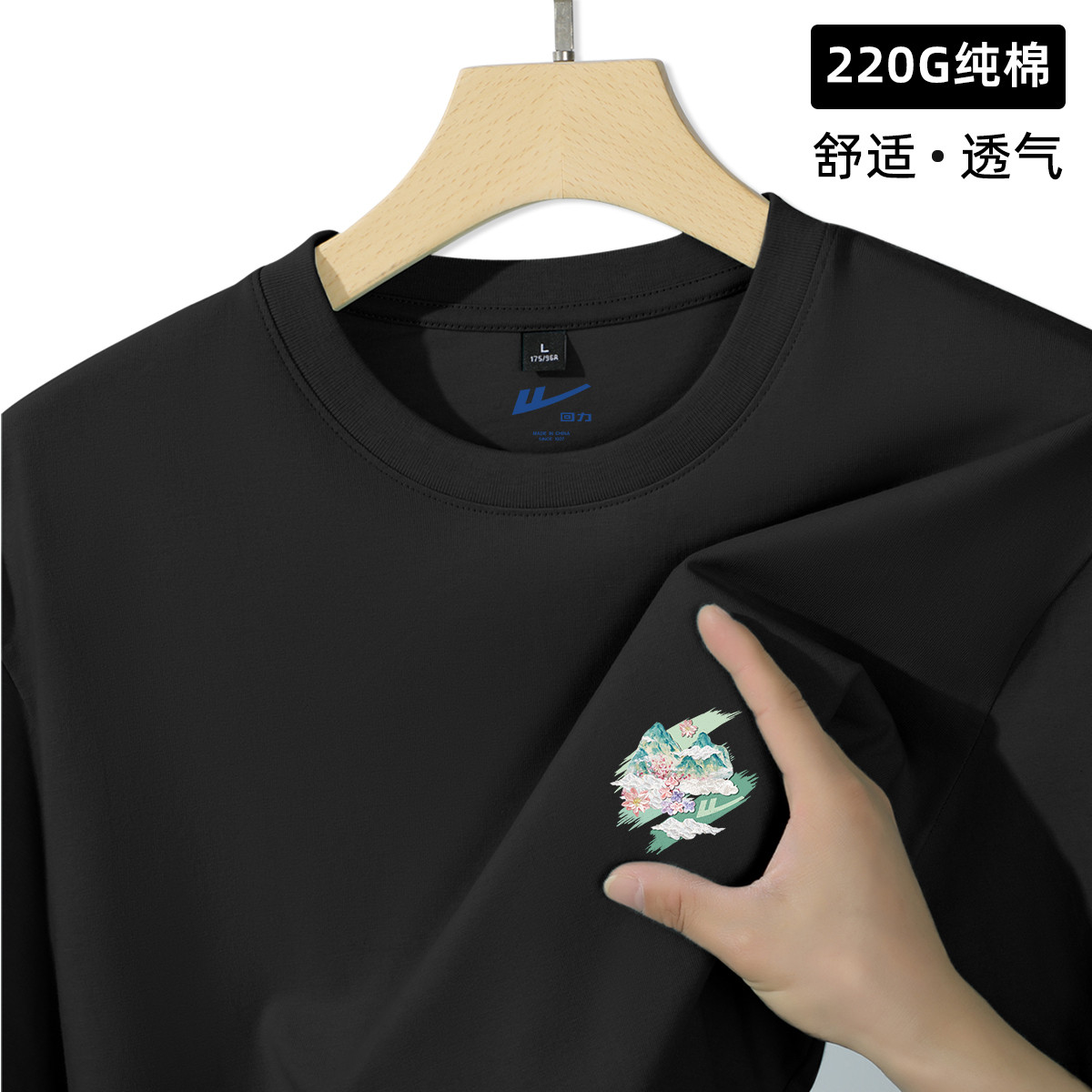 【220克重磅棉】夏季男休闲百搭绵柔短袖油画山男式运动t恤 321299
