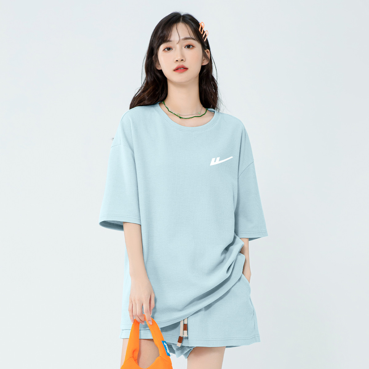 【女装】半袖女式T恤夏季宽松华夫格中长短袖上衣女潮 537171