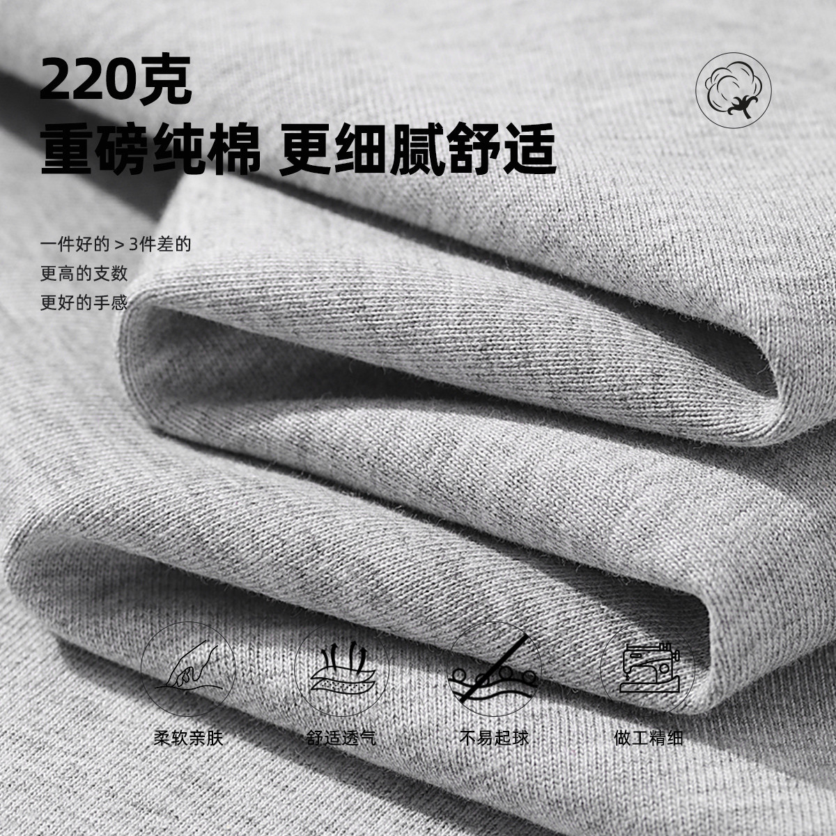 【220克重磅棉】 夏季纯棉透气运动T恤休闲美式潮流体恤男 189395