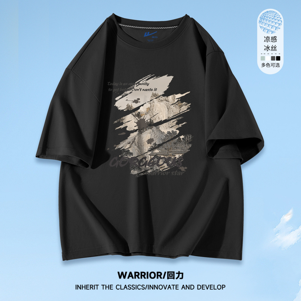 【冰感透气】冰丝短袖男夏季薄款国潮复古风宽松加肥大码运动T恤 981331