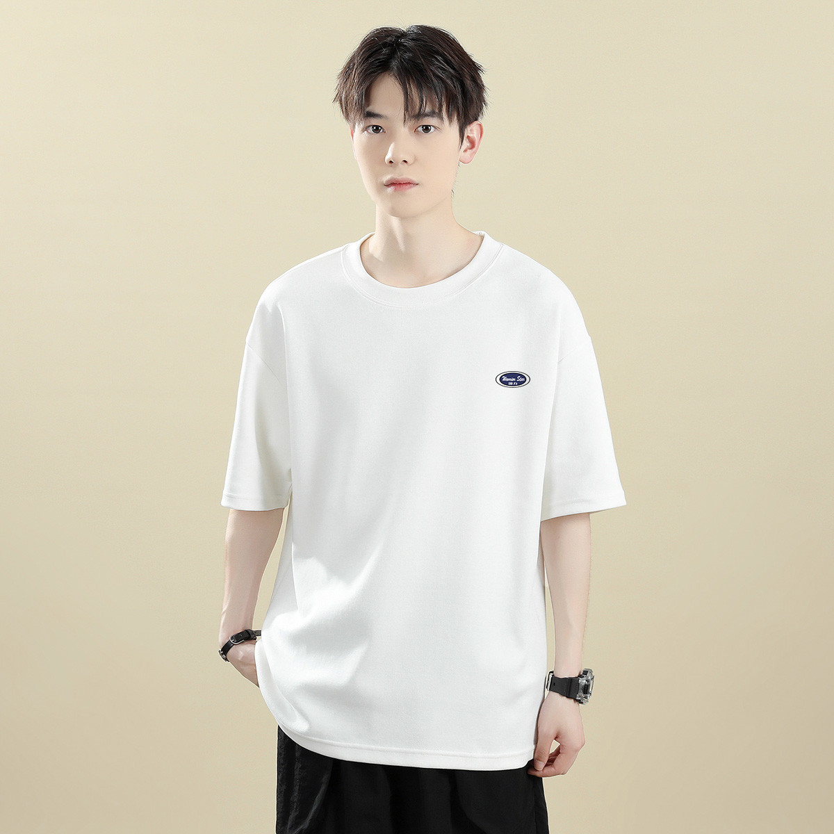 【220克重磅棉】夏季男休闲百搭绵柔短袖简约时尚胸标男式t恤 560147