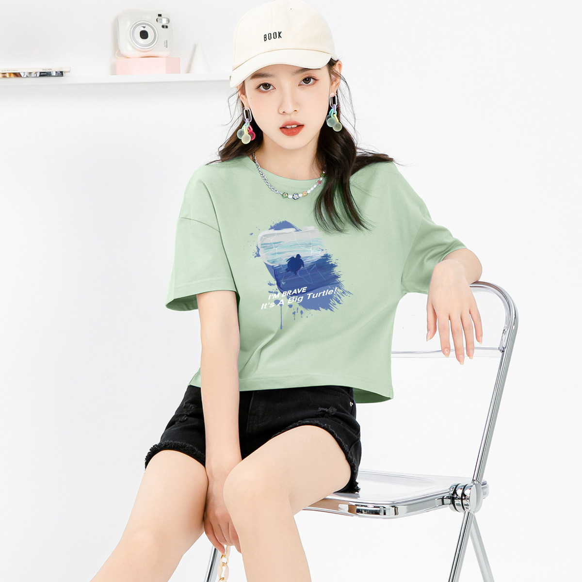 【女装】短款短袖t恤女纯棉宽松夏季露脐装个性女式上衣 898771