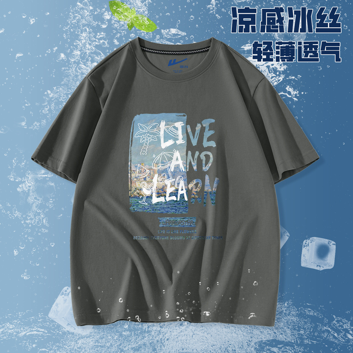 【冰爽透气】冰丝男士t恤夏季户外运动美式休闲男女款冰丝体恤衫 597843