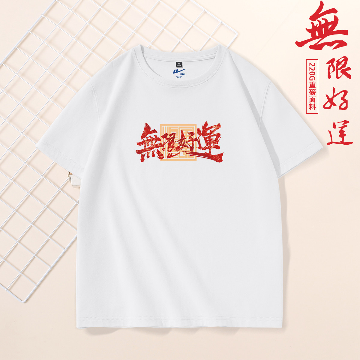 【重磅纯棉】国潮短袖t恤男夏季宽松透气男女同款无限好运半袖 822931