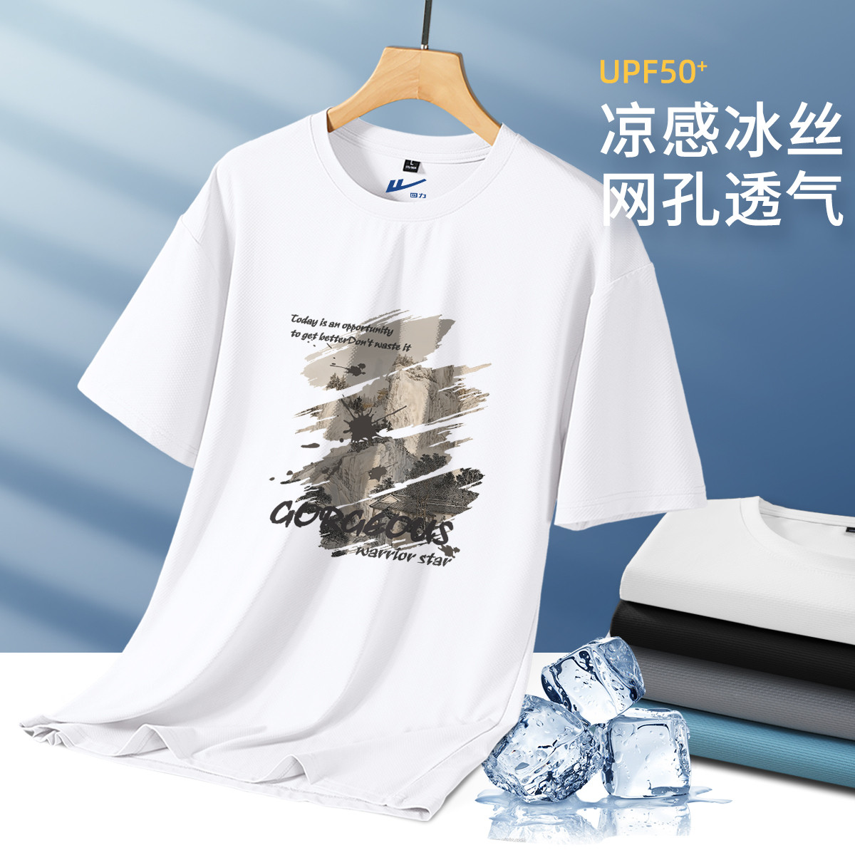 【UPF50】冰丝防晒男士夏季薄款短袖t恤国潮风冰感运动上衣 916627