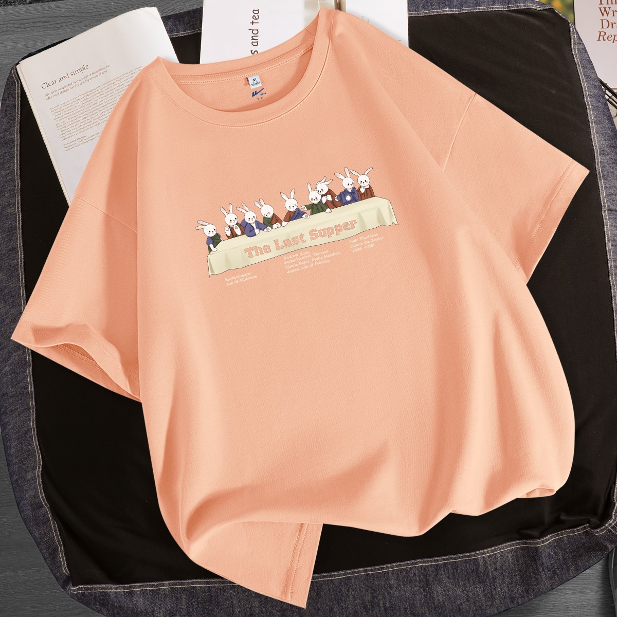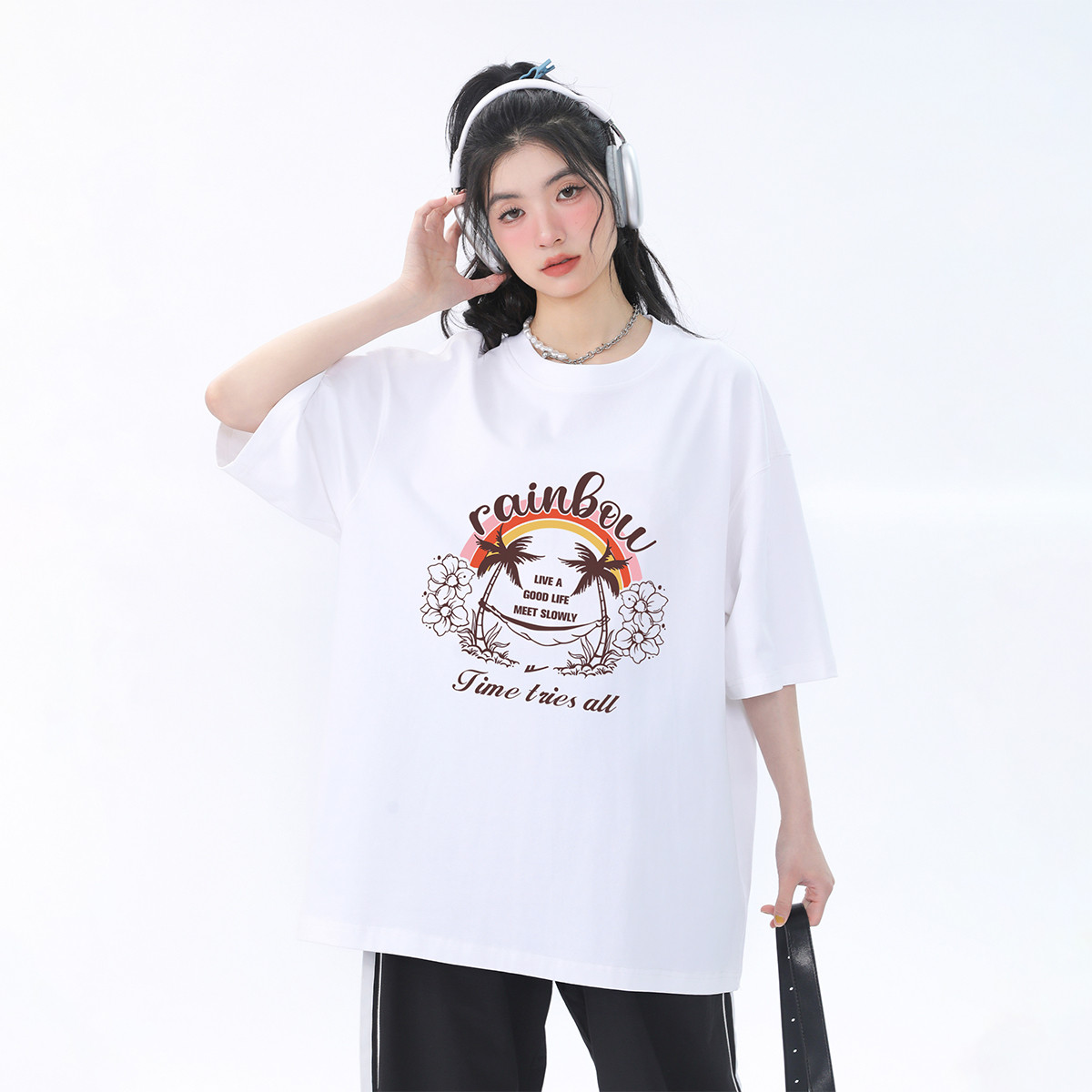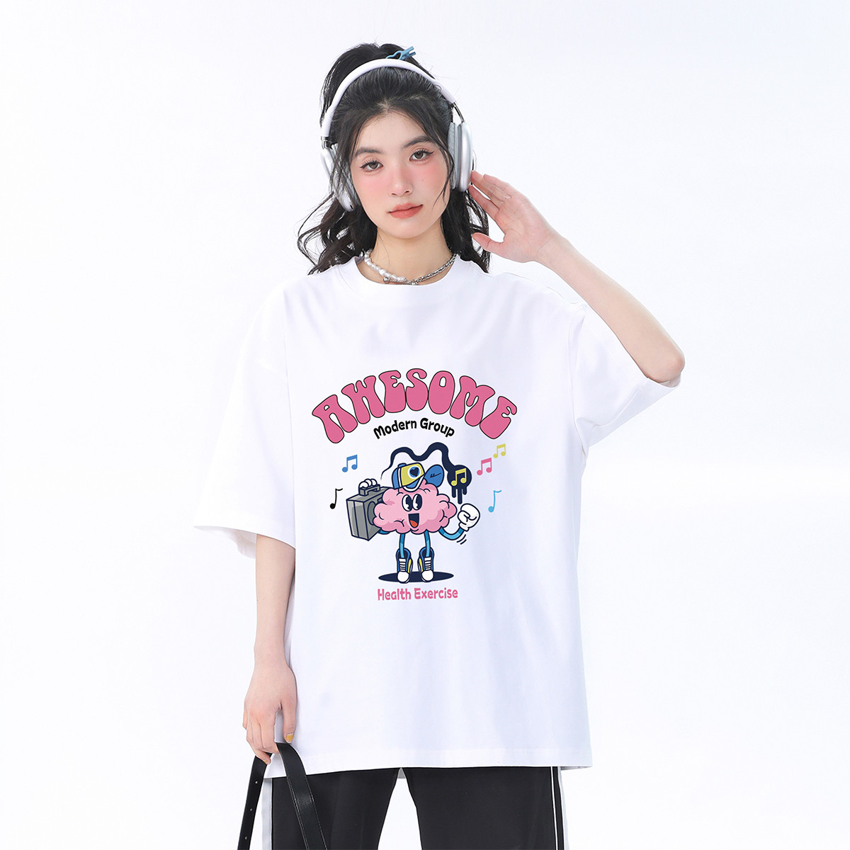 随性纯棉T恤女夏季oversize宽松趣味卡通印花上衣女短袖 293203