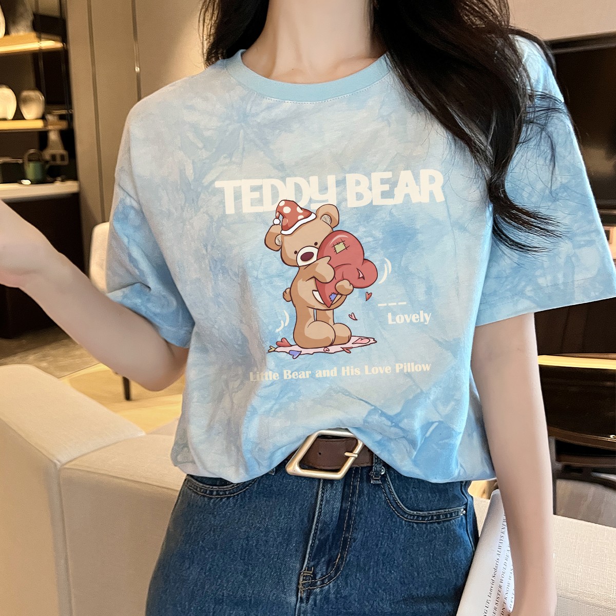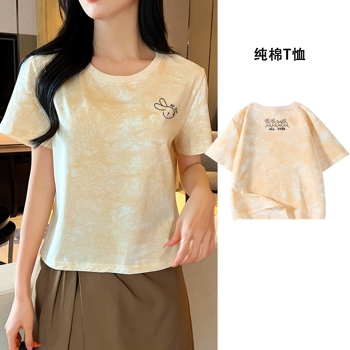 【女装】扎染短袖女式T恤夏季宽松少女感穿搭纯棉上衣 122579