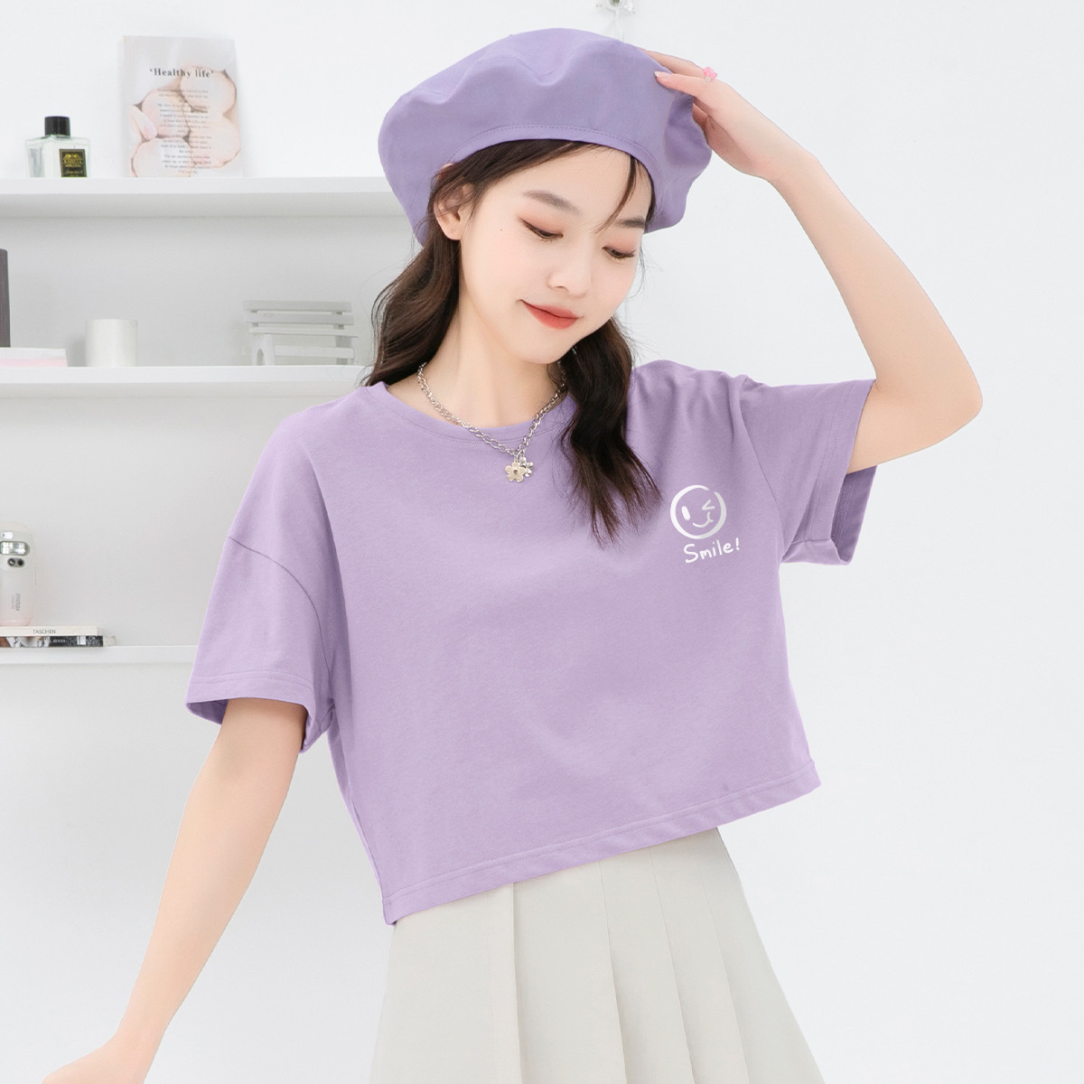 【女装】短款短袖女式t恤夏季高腰显瘦设计感纯棉上衣潮 802835