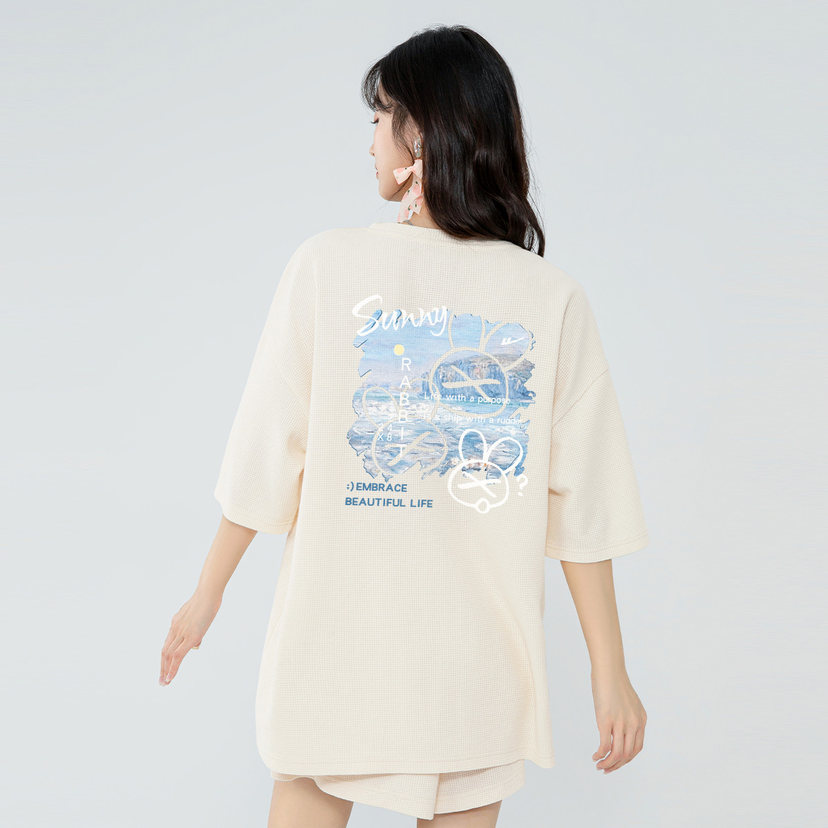 【女装华夫格】中长款下衣失踪T恤女夏季宽松休闲运动慵懒风上衣 476179