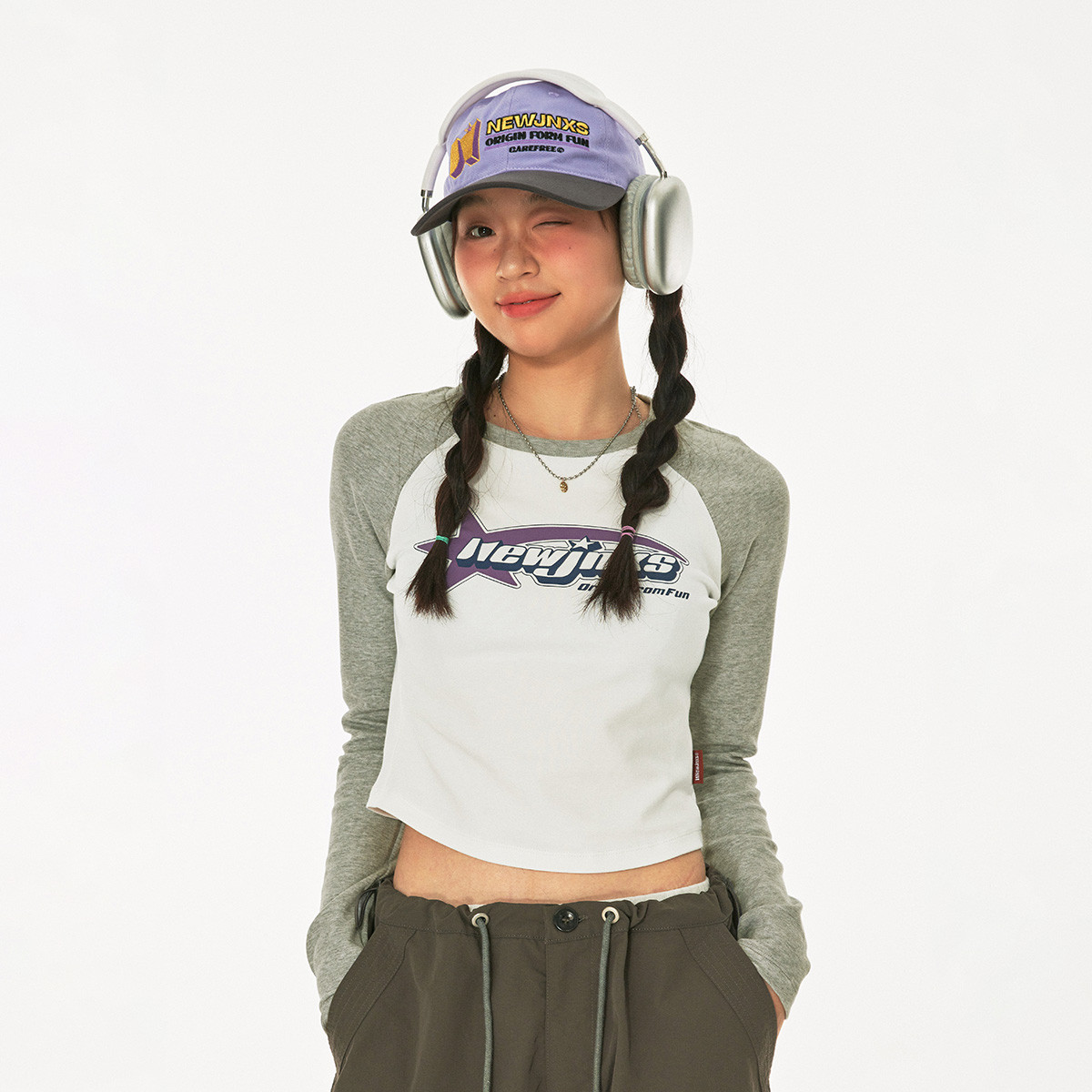 JNXS江南先生美式插肩袖印花长袖T恤男女春季潮牌情侣打底衫 948177