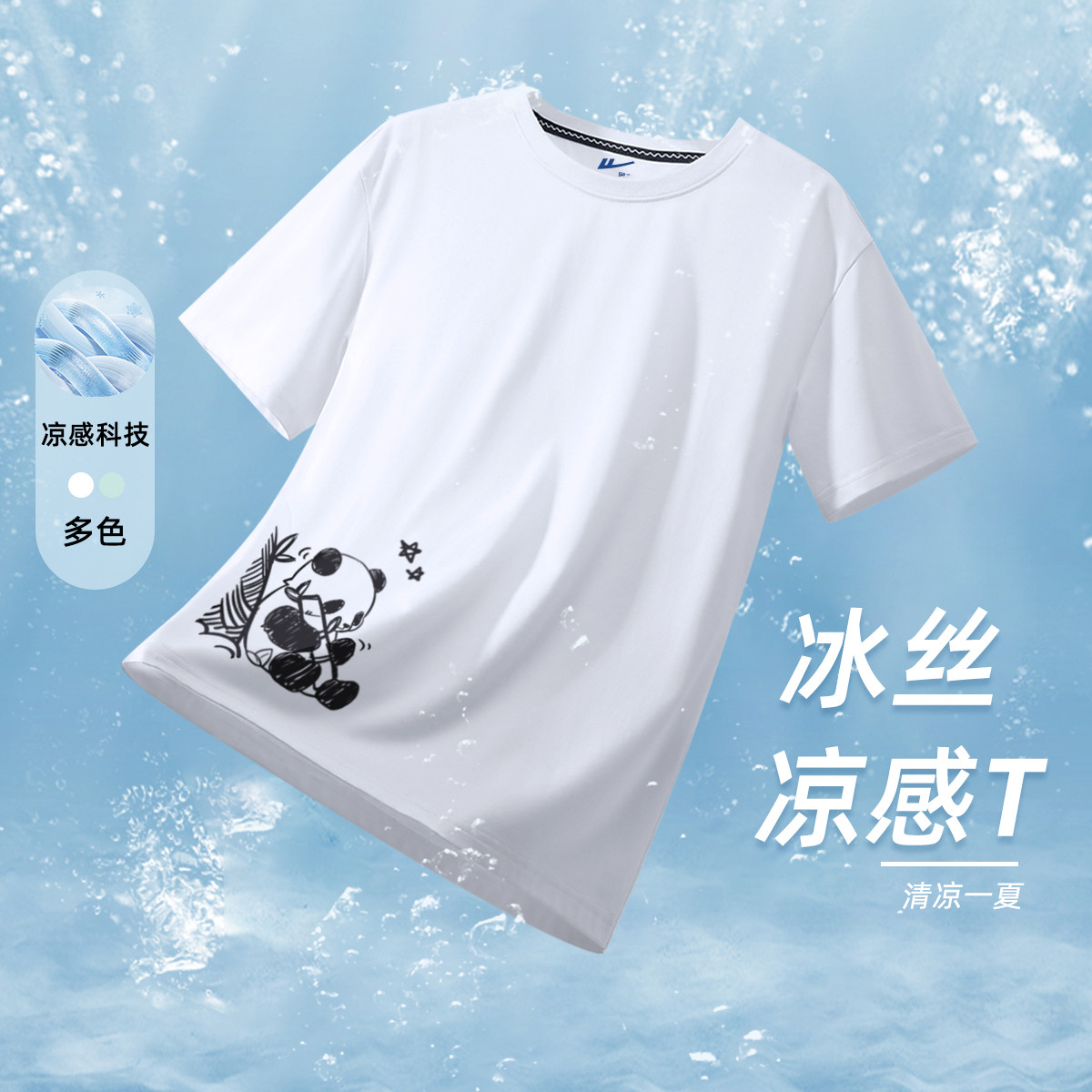 【凉感透气】冰丝短袖t恤男夏季薄款青少年学生国潮熊猫宽松上衣 957587