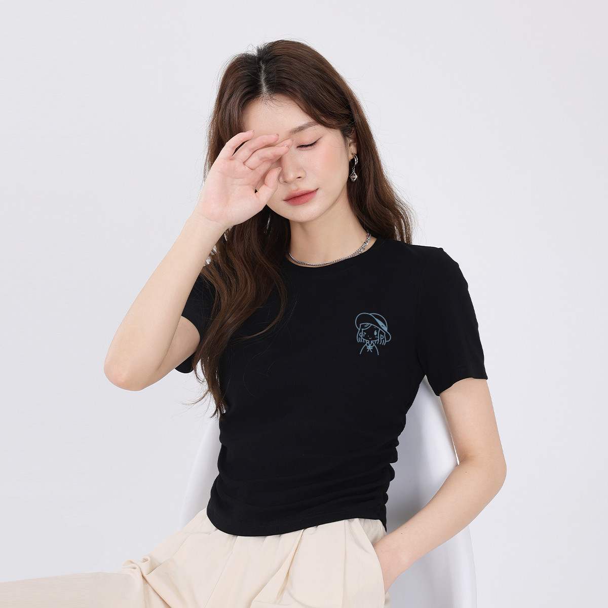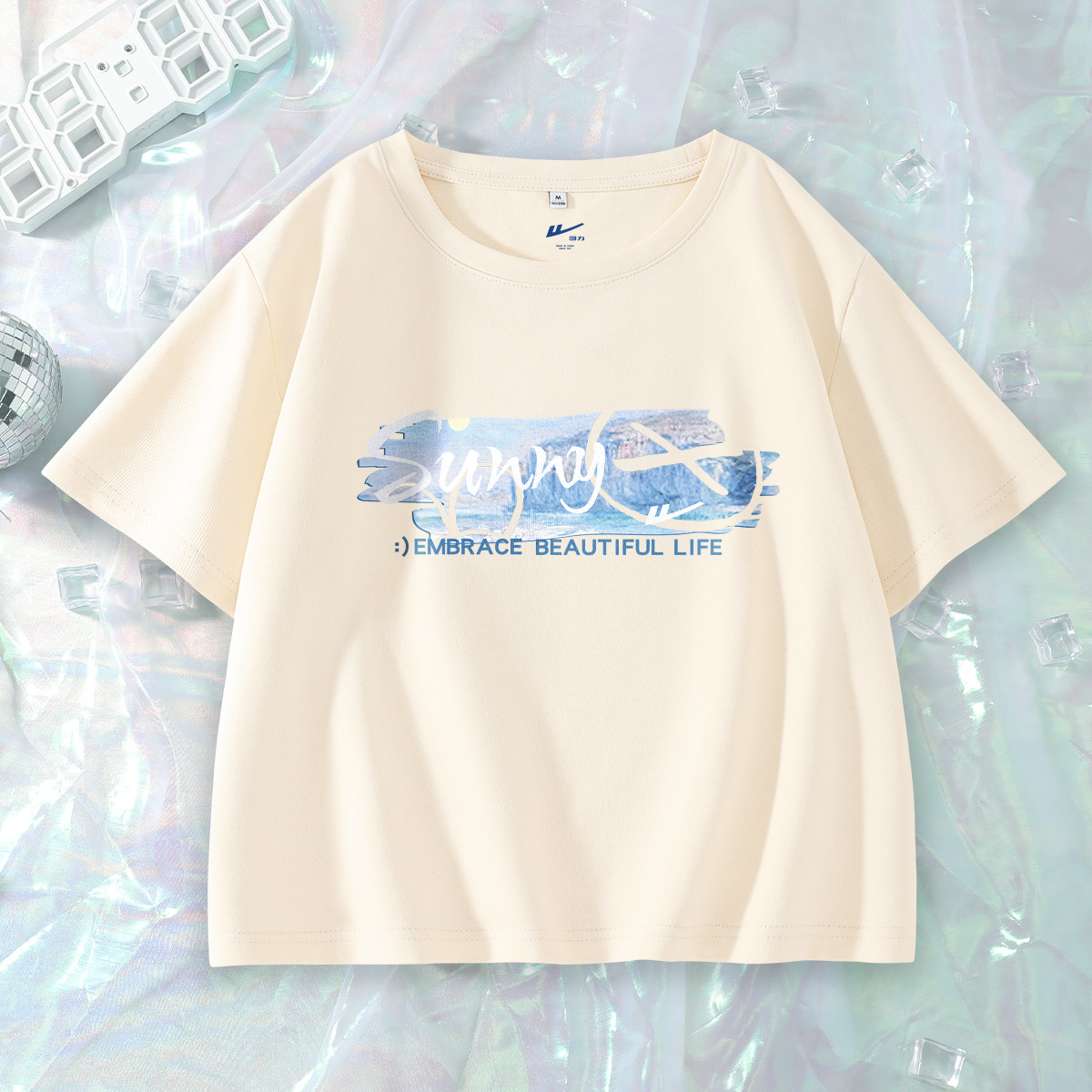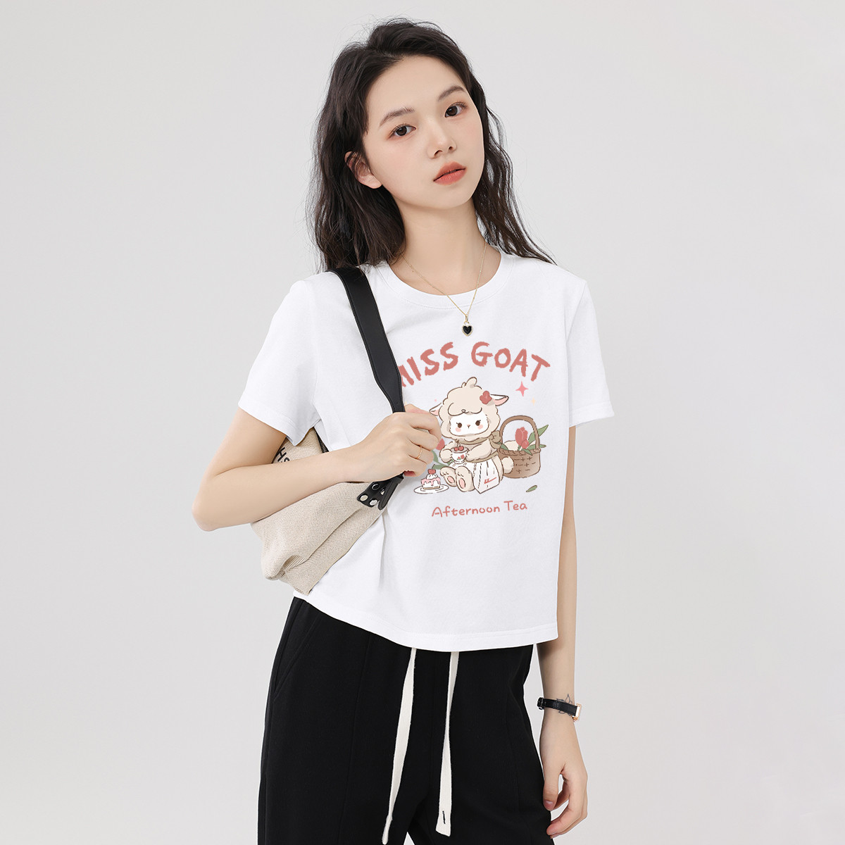 【女装100%棉】夏季女式短袖T短款显瘦设计感甜辣风上衣 329363