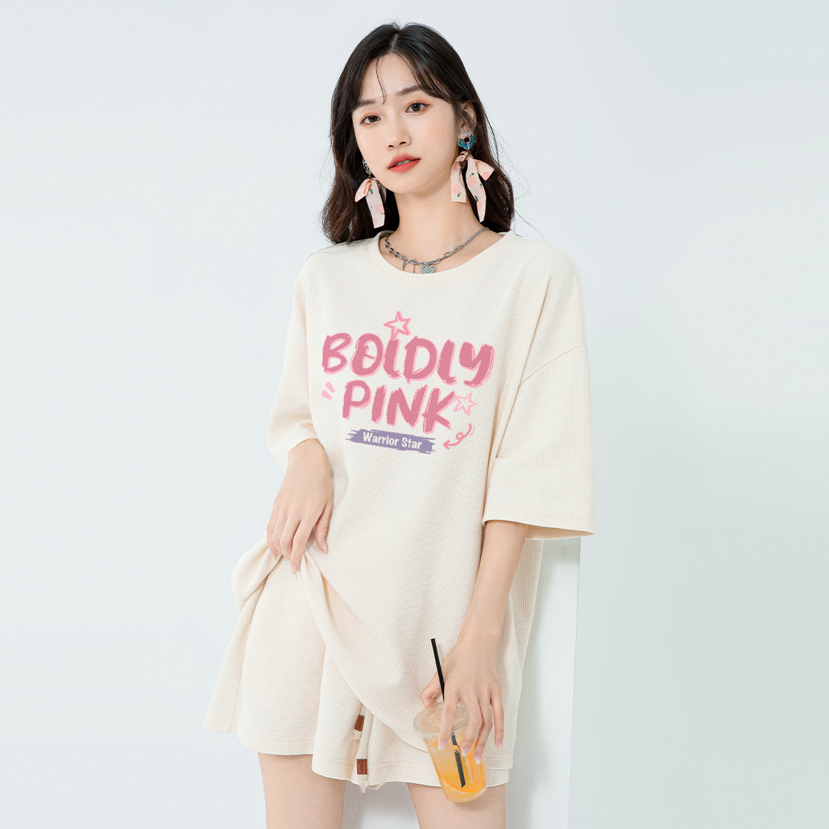 【女装华夫格】中长款下衣失踪T恤女夏季宽松休闲运动慵懒风上衣 508947