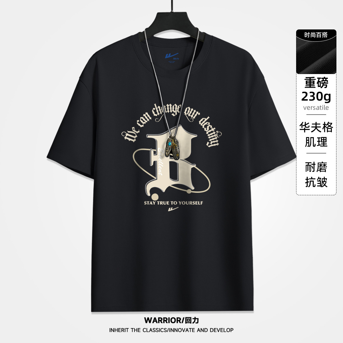 【220克重磅棉】短袖男宽松大码简约潮牌运动上衣重磅纯棉t恤 821331