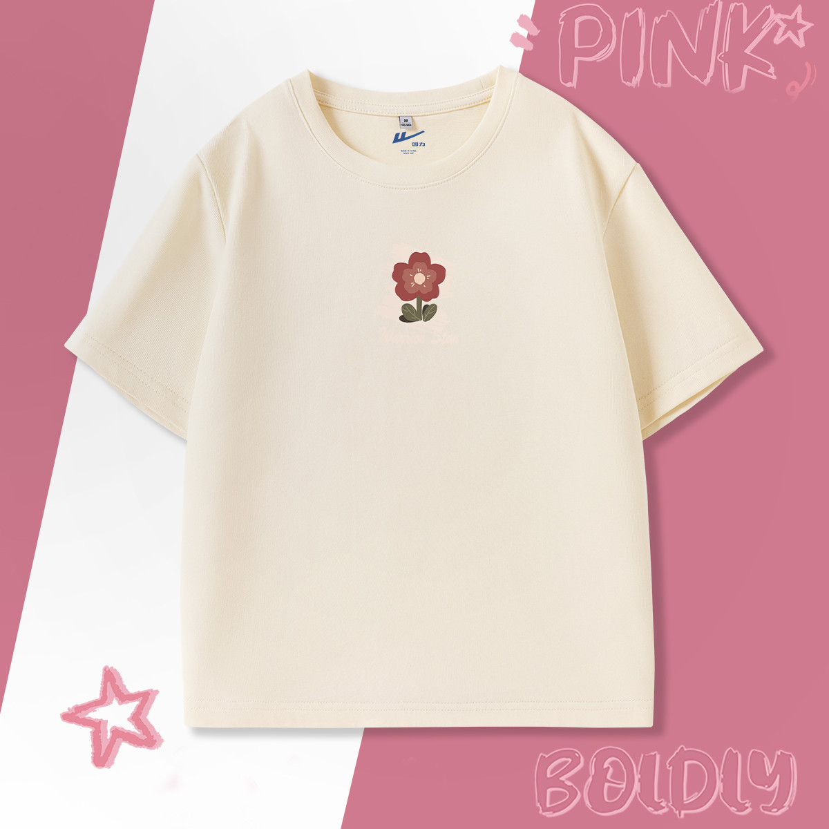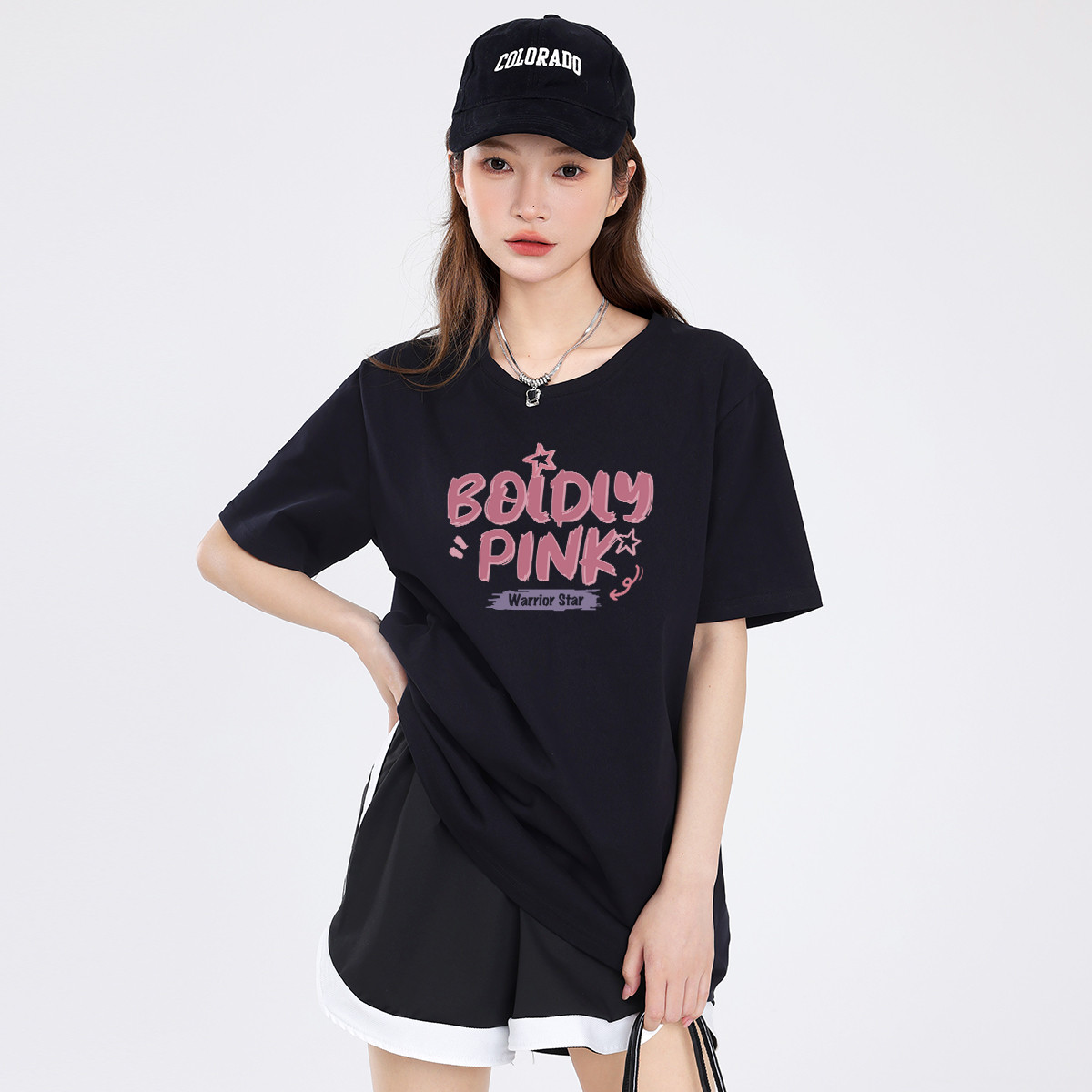 【女装重磅棉】夏季纯棉圆领T恤女运动休闲宽松中长款短袖上衣 639379