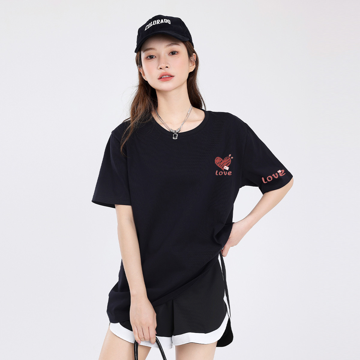 【女装重磅棉】夏季纯棉圆领T恤女运动休闲宽松中长款短袖上衣 248723