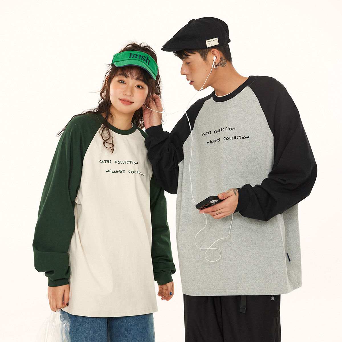 JNXS/江南先生日系复古拼接长袖T恤男女春季潮牌情侣打底衫 448017