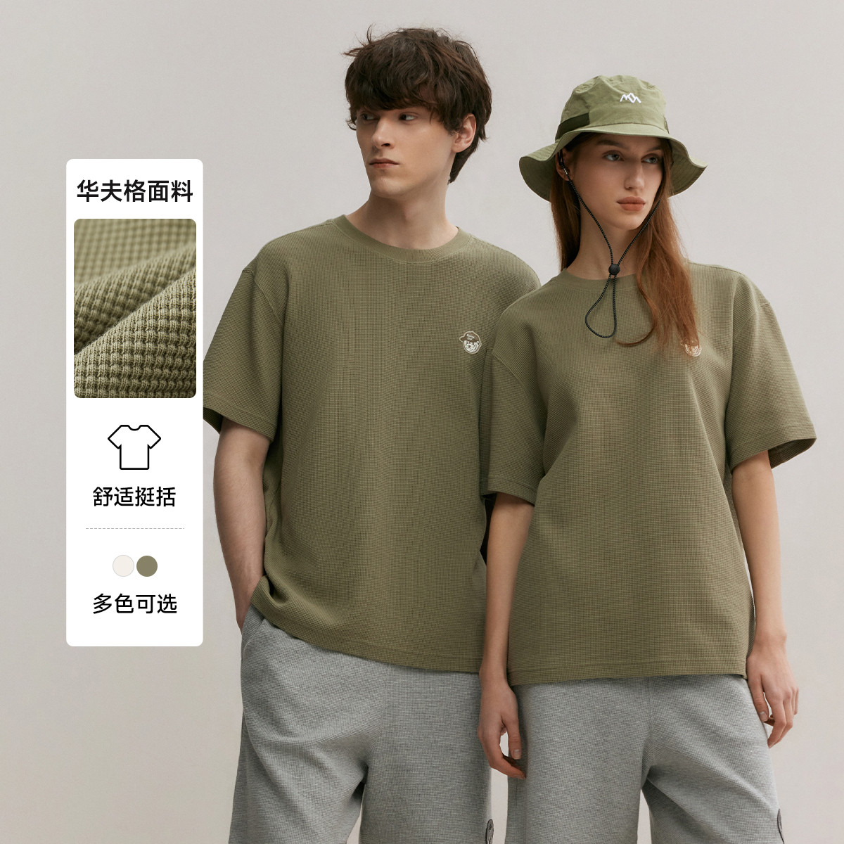 小熊男装简约时尚潮流圆领T恤男夏季休闲宽松华夫格短袖情侣t恤 137153