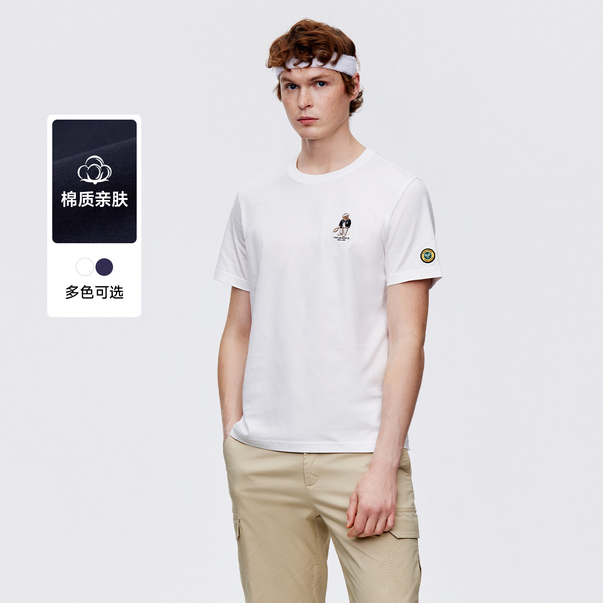 小熊男装简约时尚潮流短袖圆领休闲宽松春季白色情侣男士t恤短袖 142337