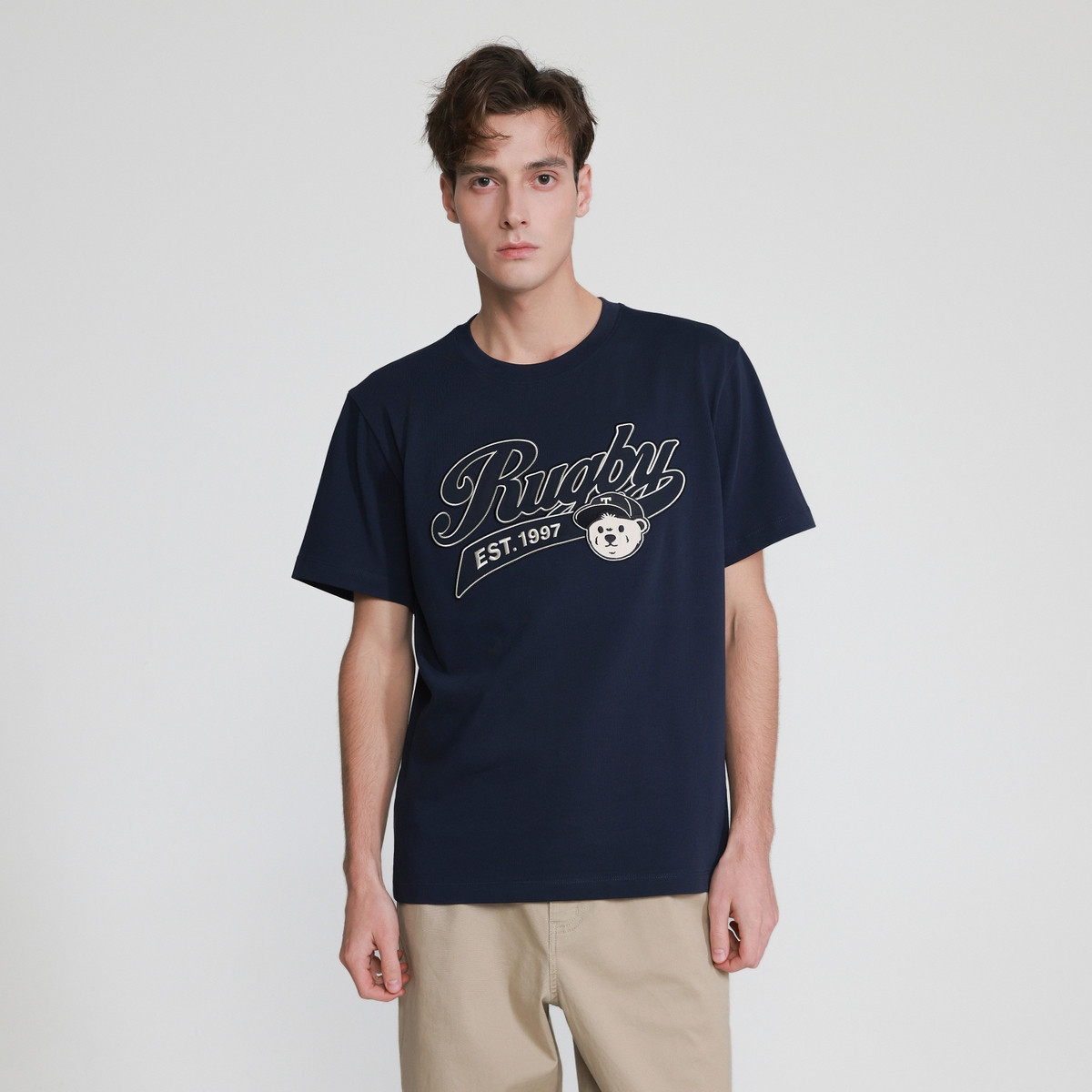 小熊男装简约舒适时尚潮流短袖圆领T恤男夏季运动休闲风t恤男 875969