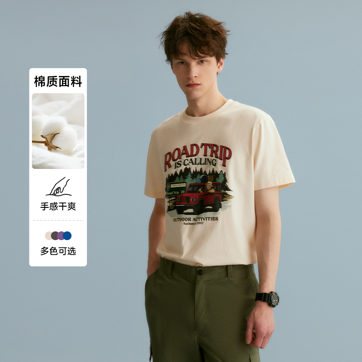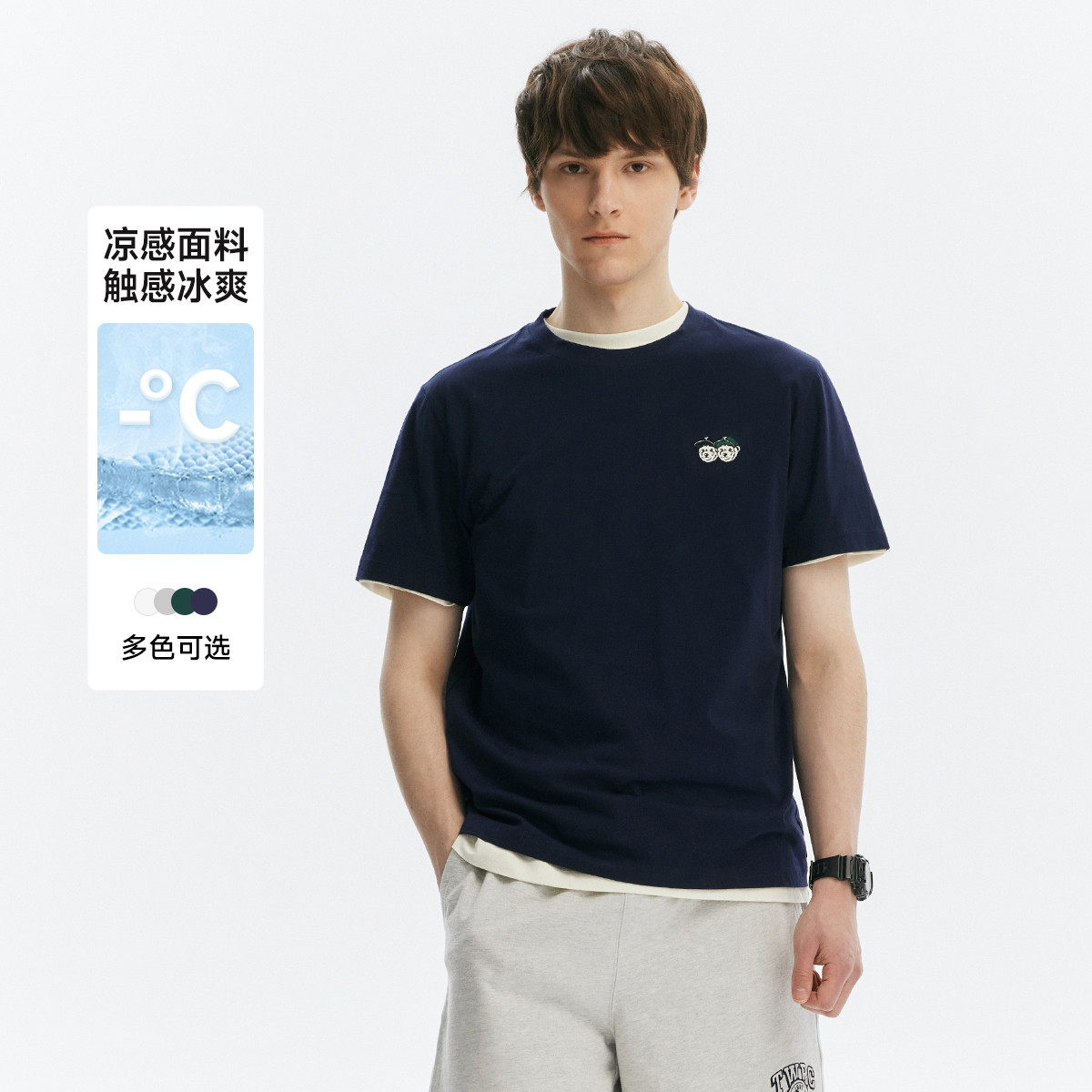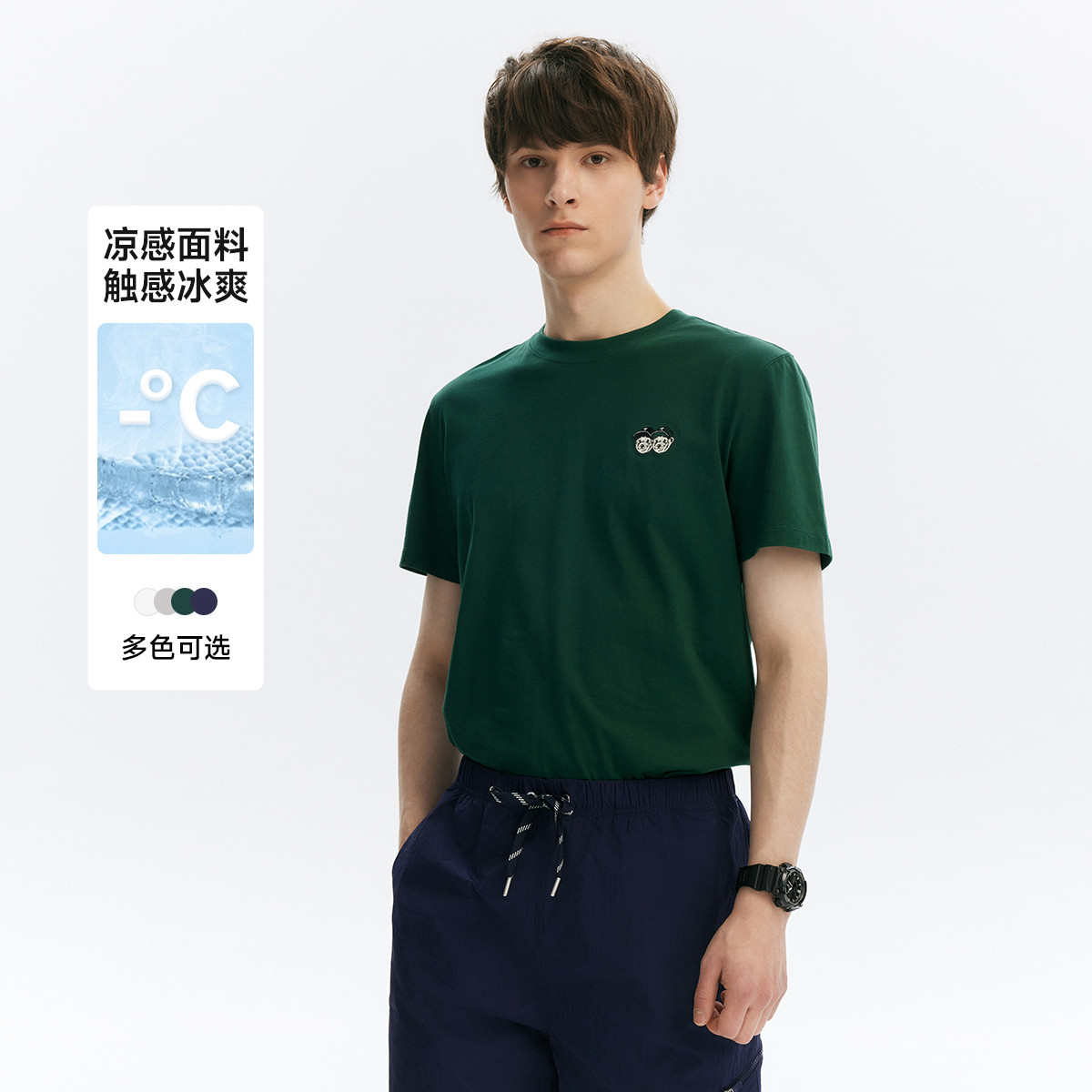 小熊男装简约时尚潮流圆领T恤夏季凉感休闲舒适短袖男士t恤短袖 022145