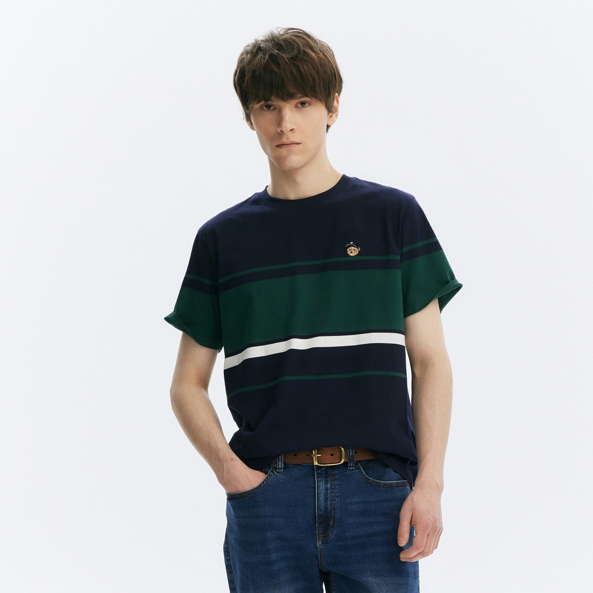 T恤小熊男装时尚简约圆领T恤夏季休闲条纹潮流短袖男士t恤短袖 589249